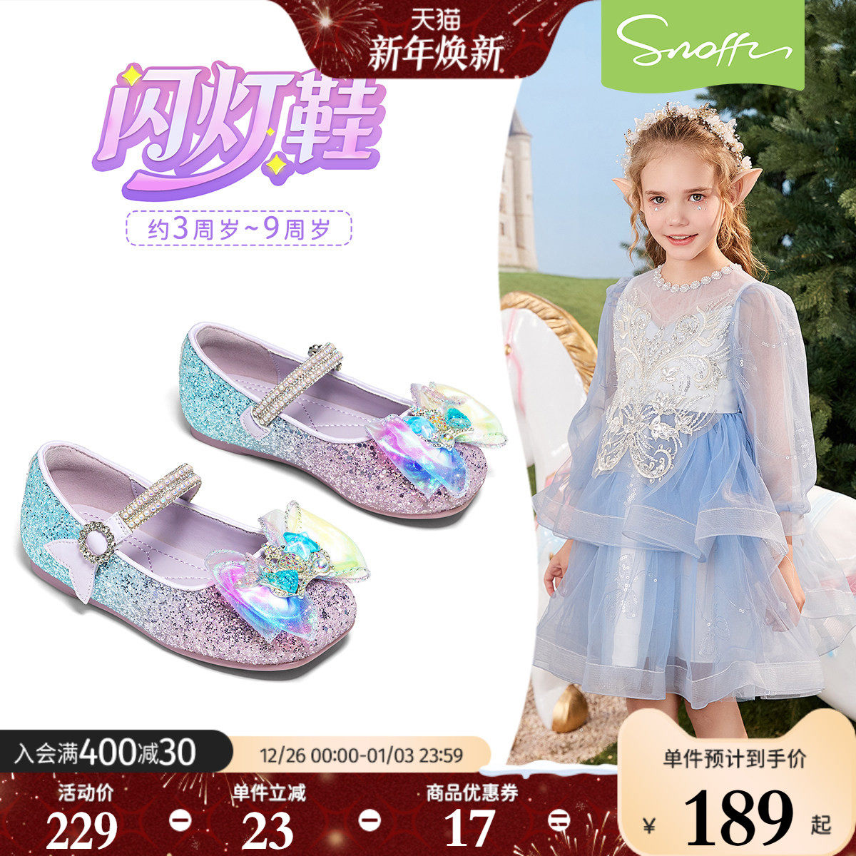 闪灯鞋|斯纳菲女童公主鞋美人鱼皮鞋儿童水晶鞋炫彩2026春秋新款