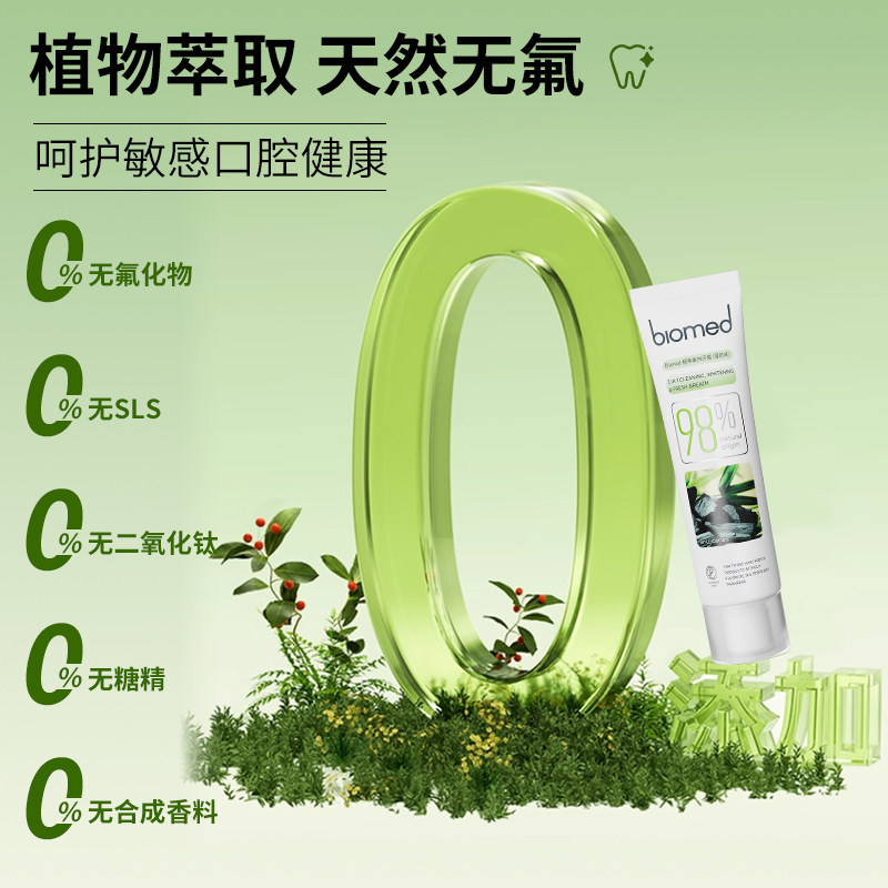 进口biomed不含氟成人孕妇牙膏靓白清新口气去黄减轻口臭官方正品