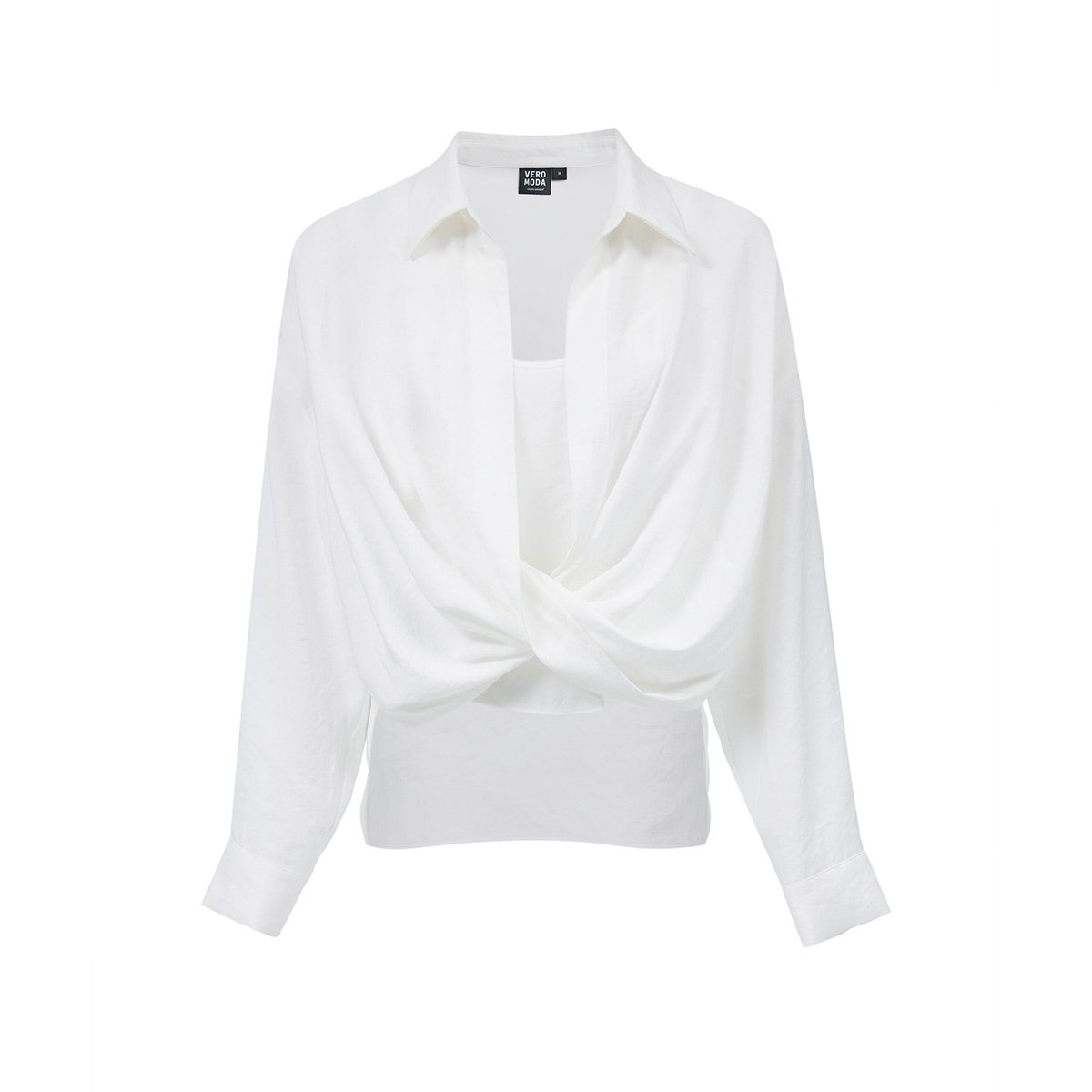 Vero Moda奥莱衬衫女2025秋季新款商场同款假两件不规则衣摆上衣