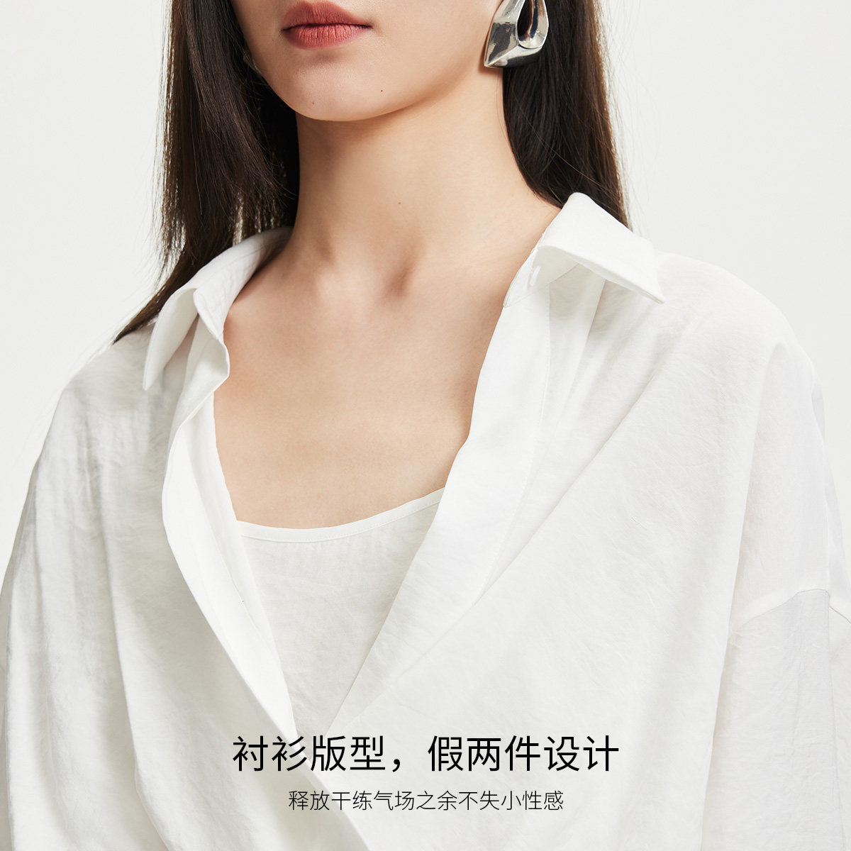 轻盈面料,舒适透气,慵懒随性;衬衫版型