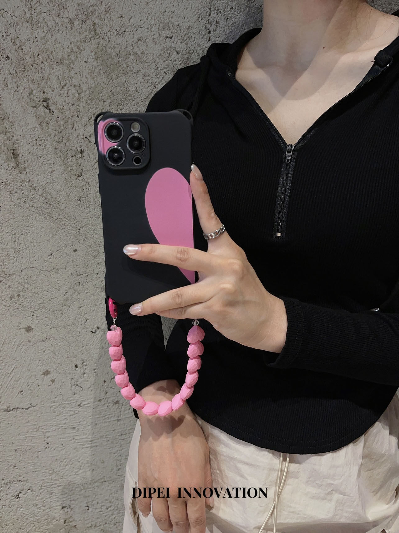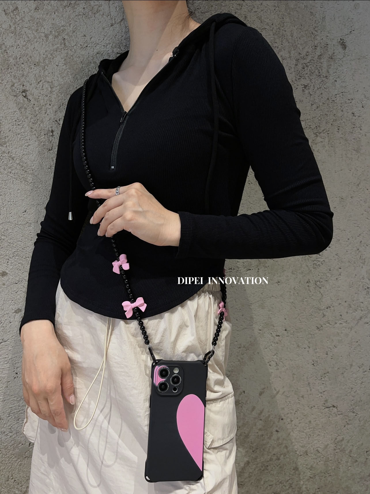 日韩少女心蝴蝶结爱心斜挎手机壳14Promax半边爱心15ultra适用苹果13全包防摔XSM手腕短链12新款11保护套TPU