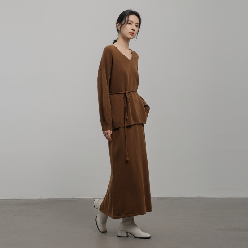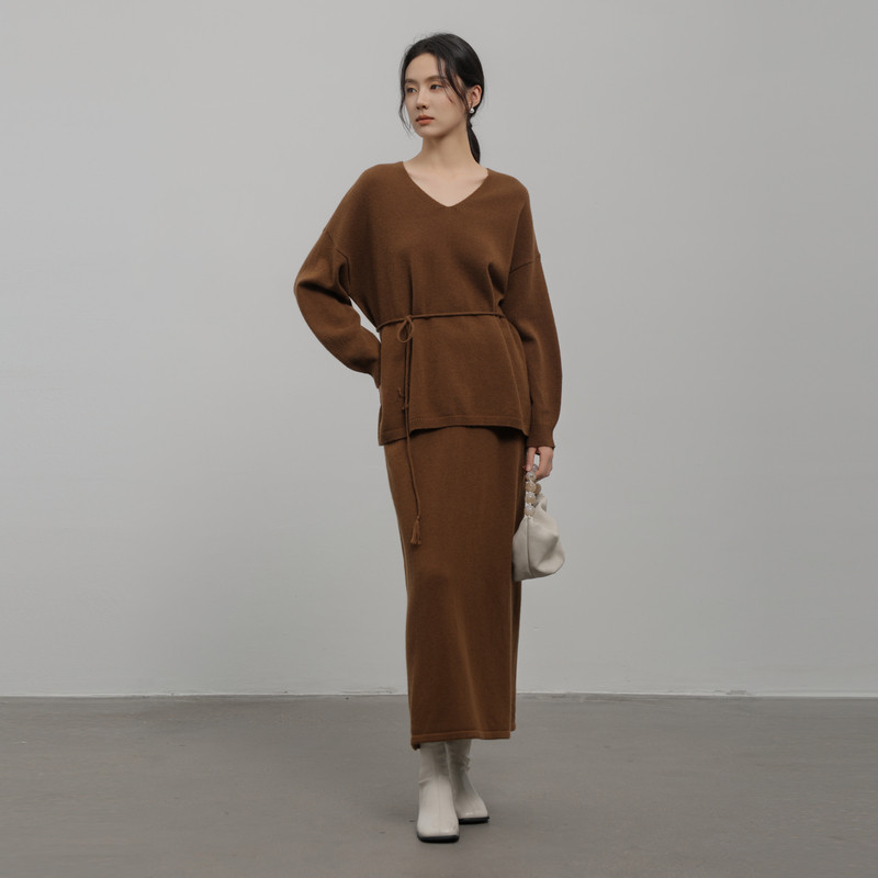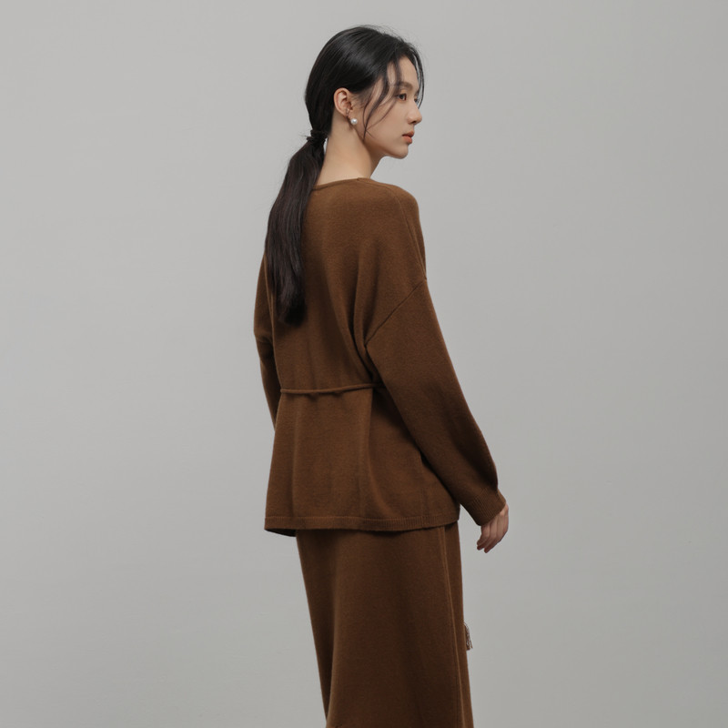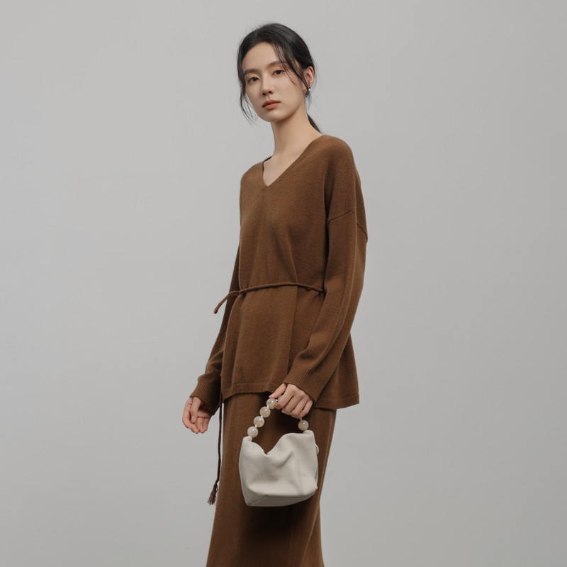 AIRIQI冬季新款静奢通勤百搭松弛感系带显瘦羊毛针织衫AH44MS400