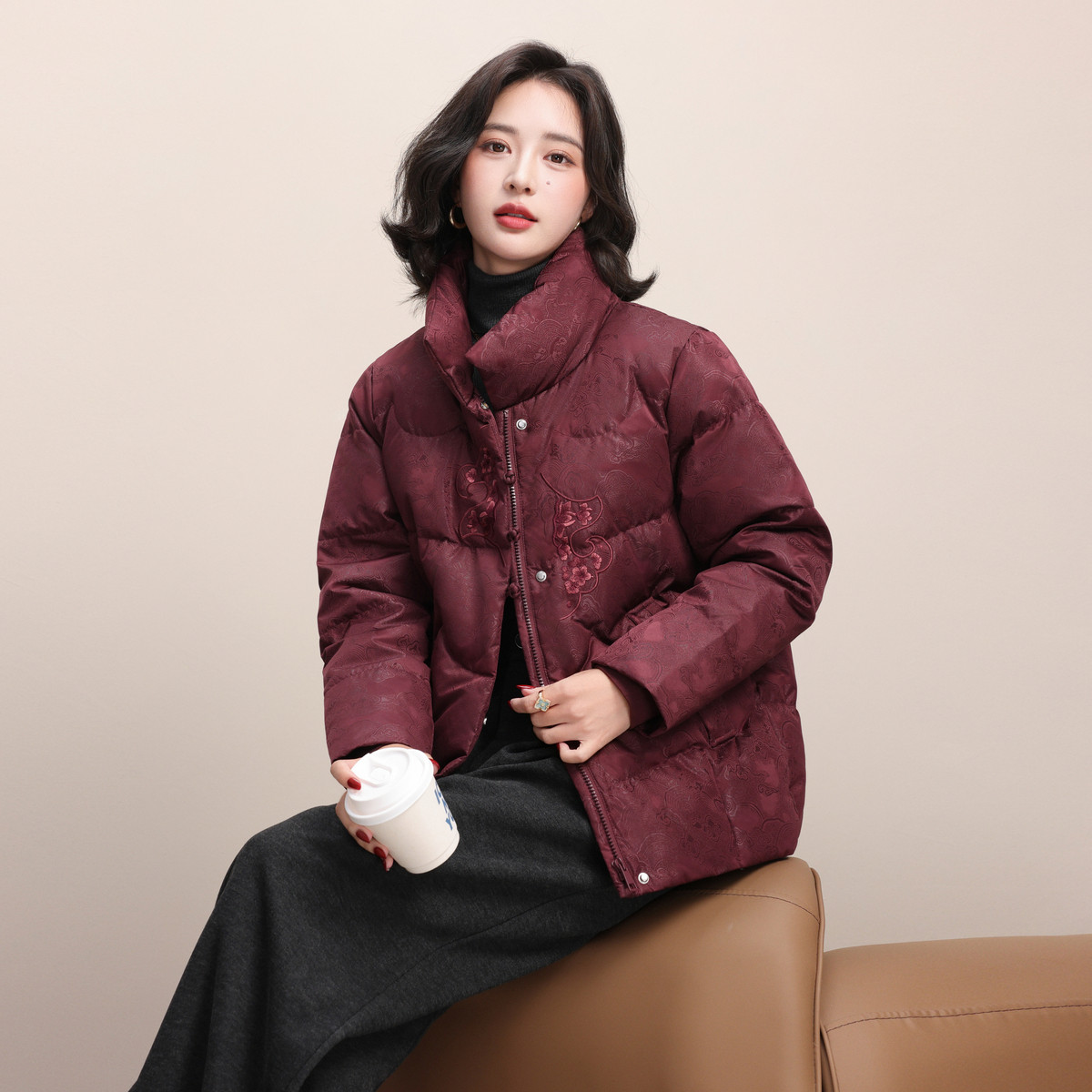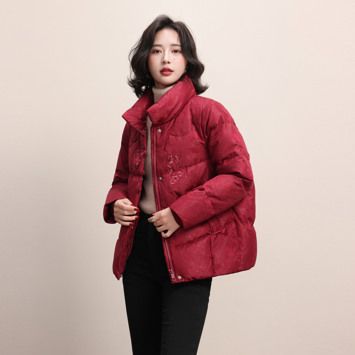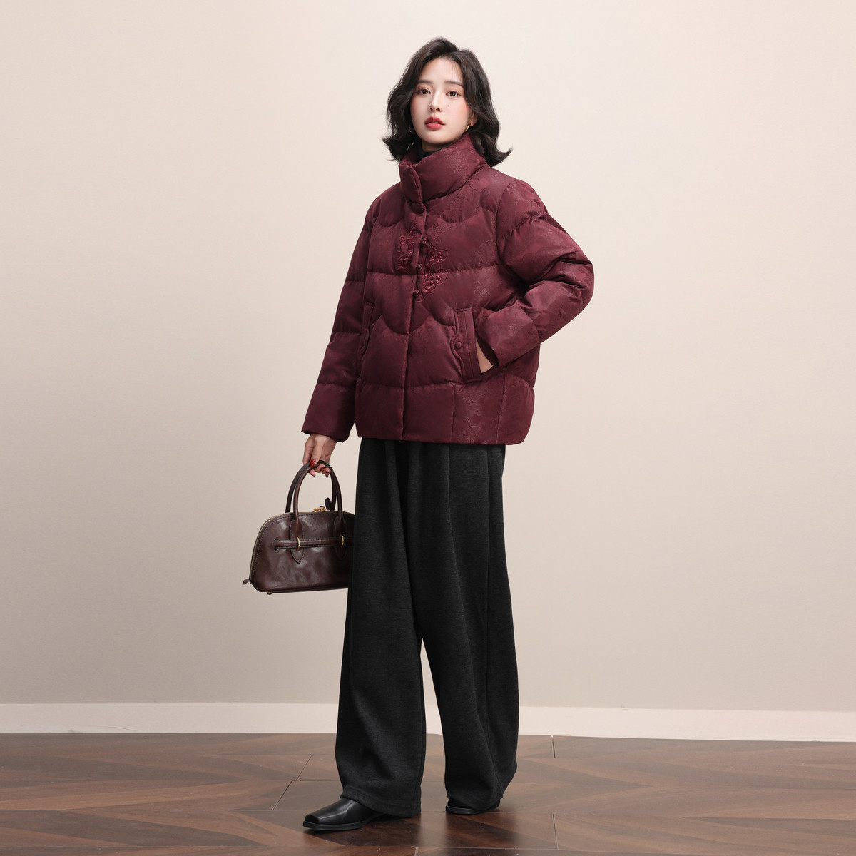 雪中飞2026春新款女士中式妈妈短设计感羽绒服花纹盘扣气质保暖