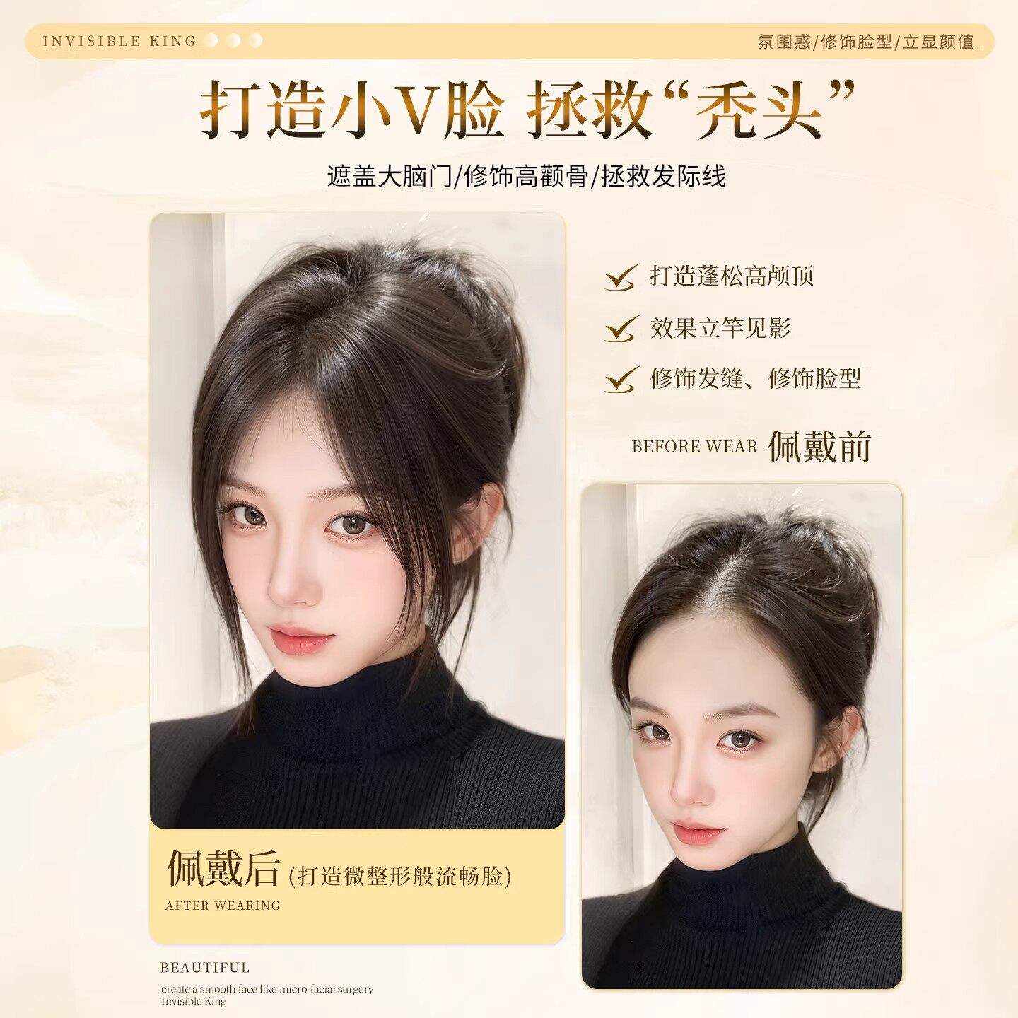 假发女片头顶补发仿真发遮白发蓬松颅顶增发量自然前额无痕补发片