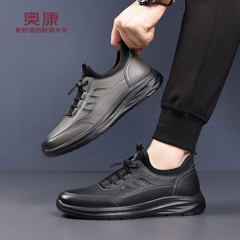 奥康 男鞋2025秋季真皮透气男士轻便软底皮鞋头层牛皮防滑休闲鞋H