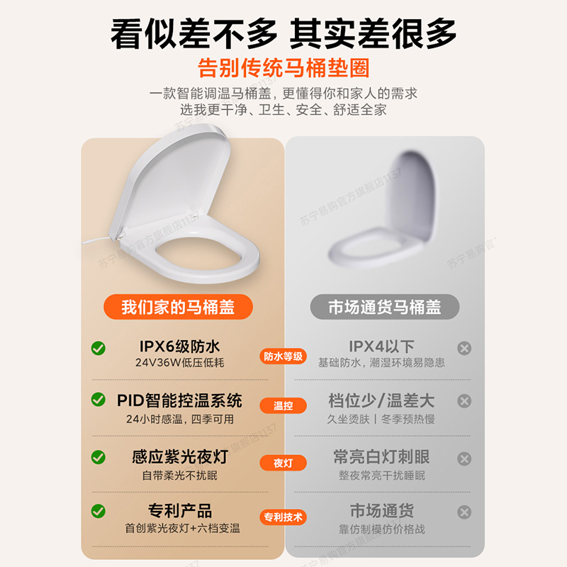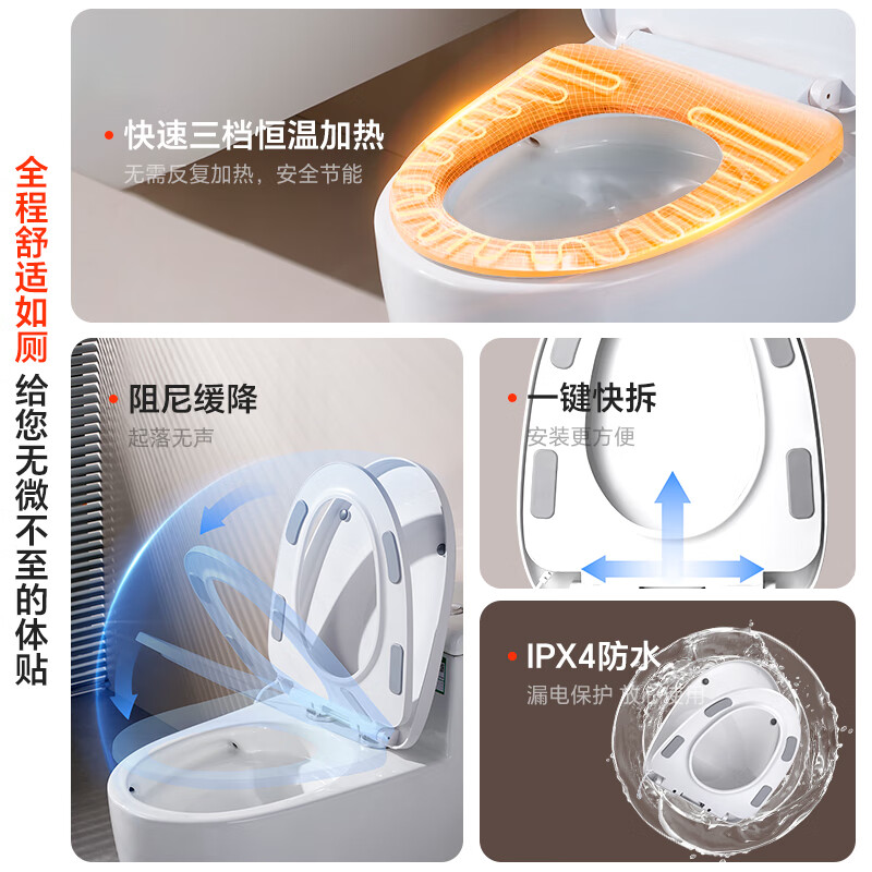 家用加热马桶盖座圈家用通用自动电加热恒温智能U型V型坐便器盖