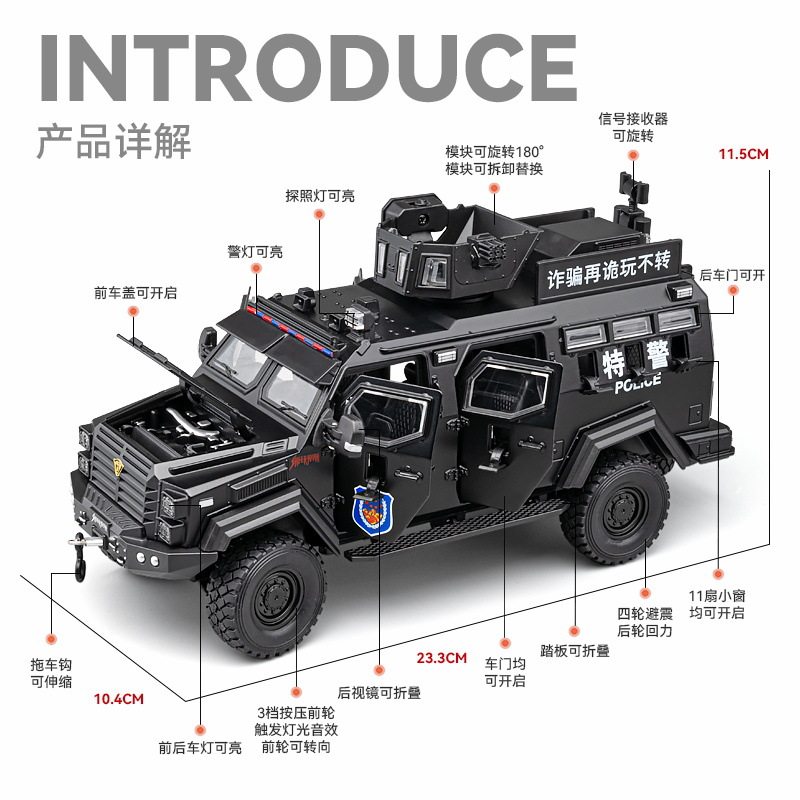 剑齿虎装甲警车玩具男孩正版合金防爆特警越野车模警察车玩具车3