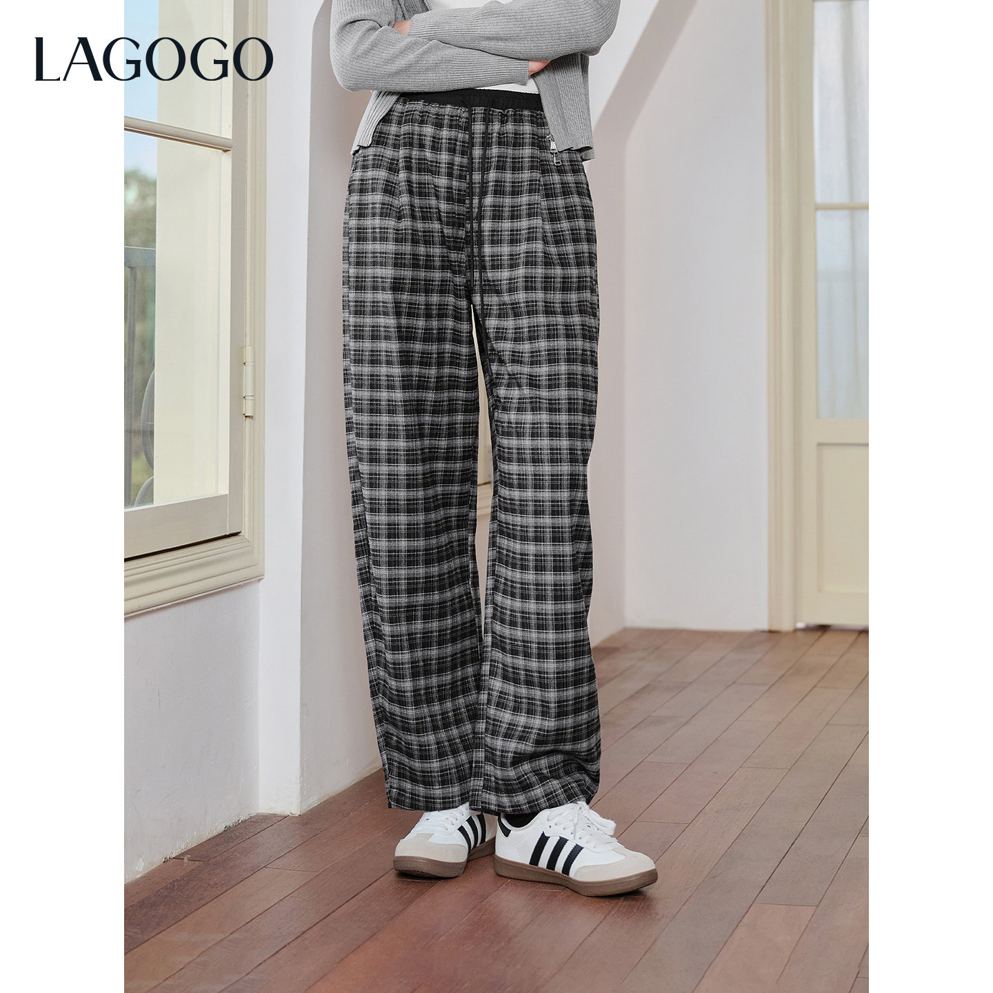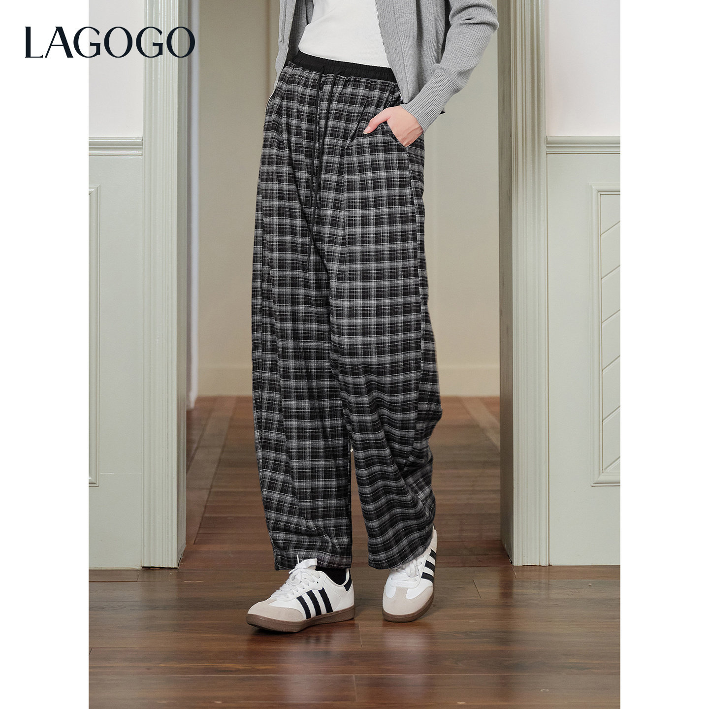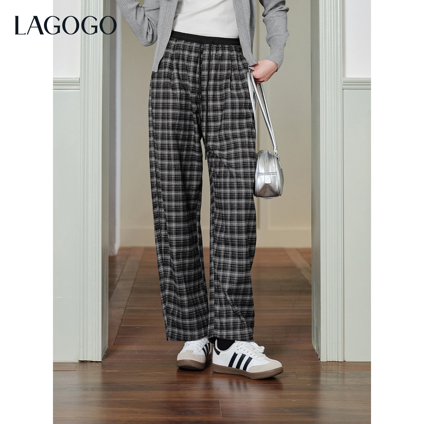 LAGOGO经典黑白格纹弯刀裤女拉谷谷2025年冬季新款复古百搭长裤