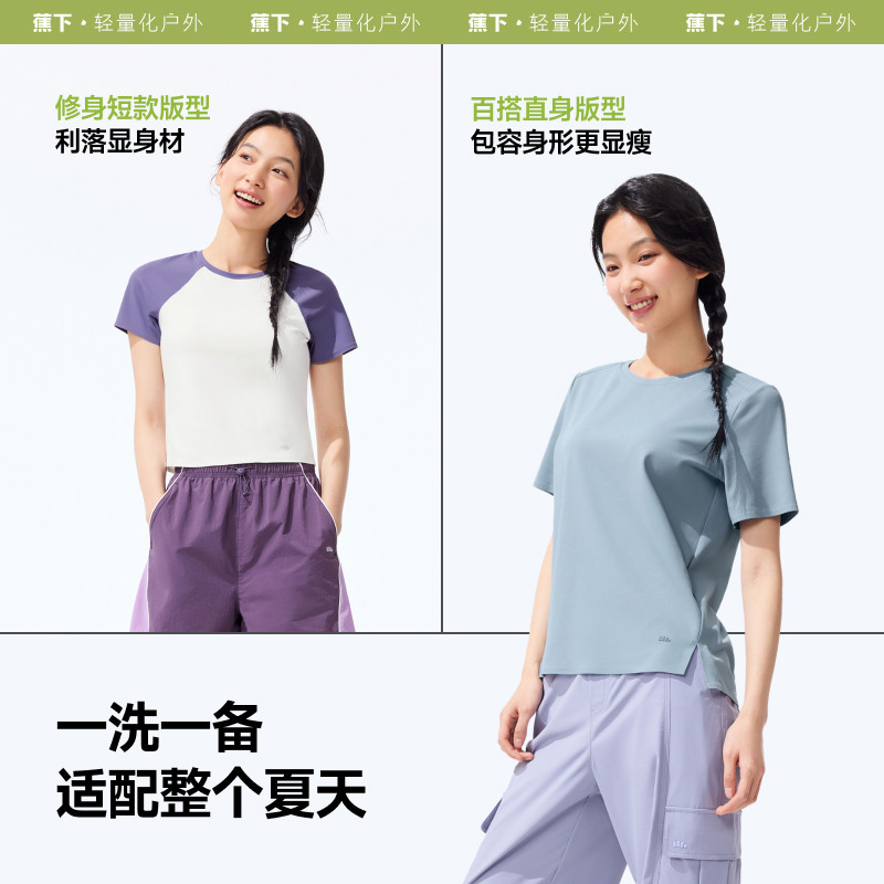 蕉下运动凉感宽松T恤女短袖户外春夏2025徒步健身内搭户外打底衫