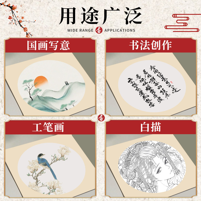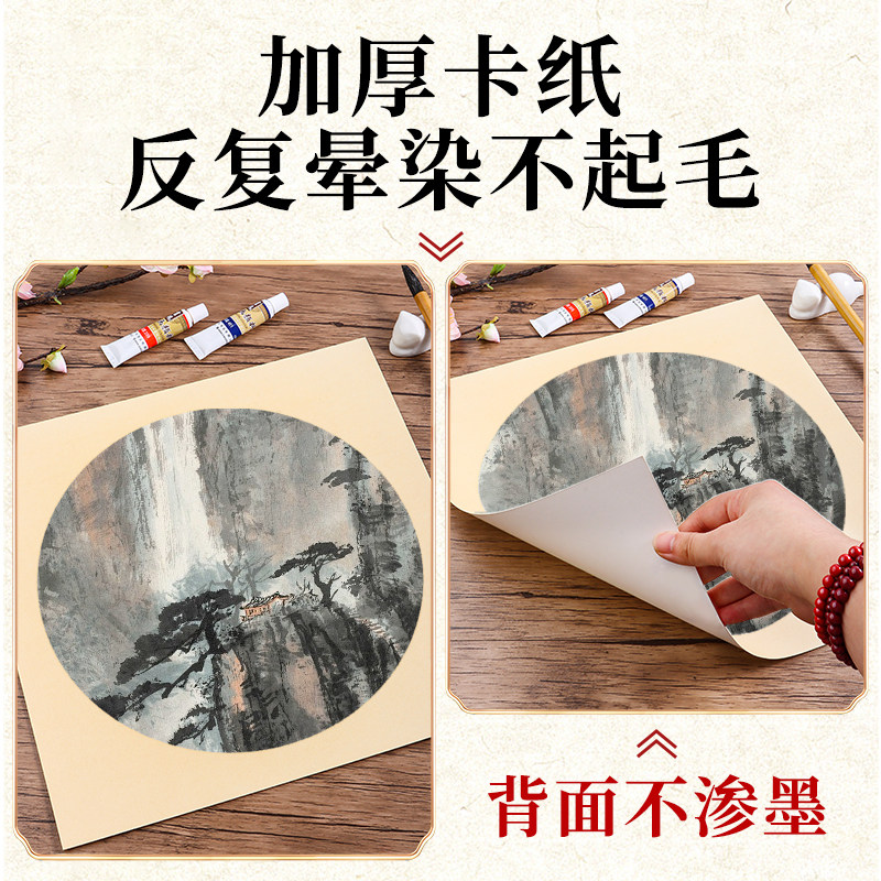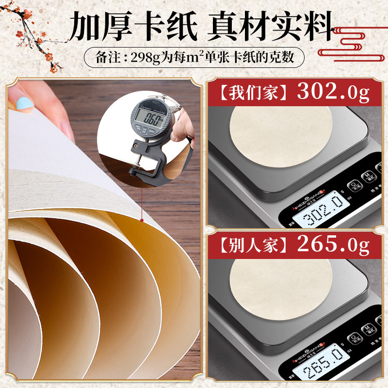 宣卡纸生宣纸33宣卡宣纸半生熟熟宣国画专用内白38外麻卡宣方形镜片纸仿古半熟正方形硬卡纸圆形画纸镜面纸