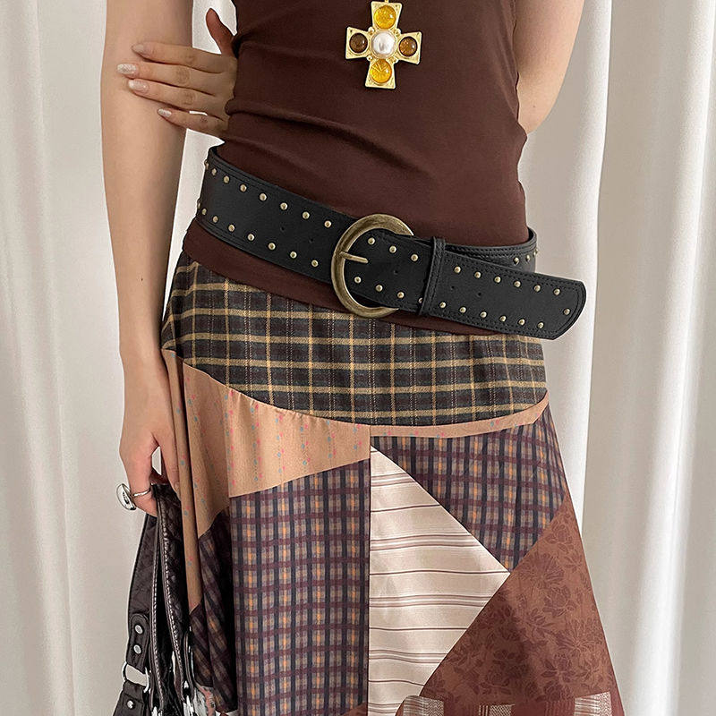 女新款时尚小众系带上衣腰链百搭裤带宽松休闲复古设计感皮带铆钉