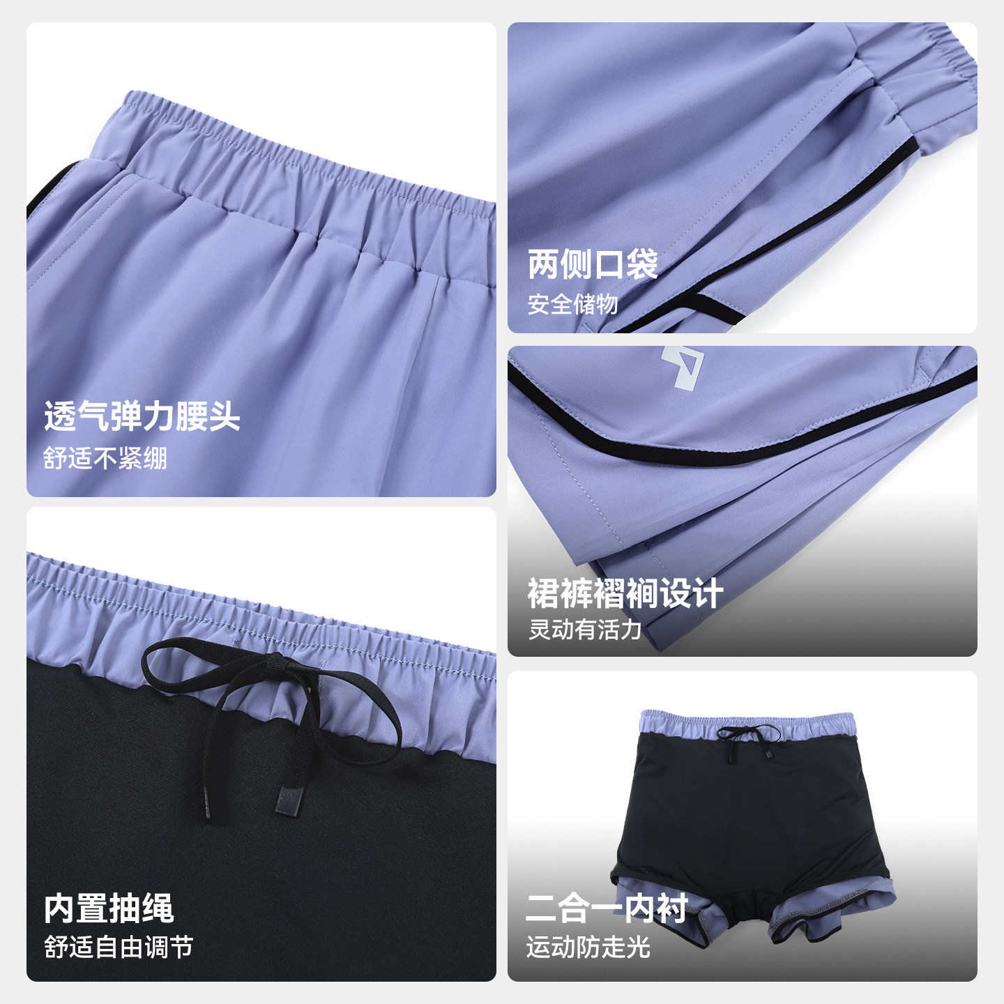 拓路者夏季户外速干运动短裤女跑步健身百褶训练裤打底裤短款女裤