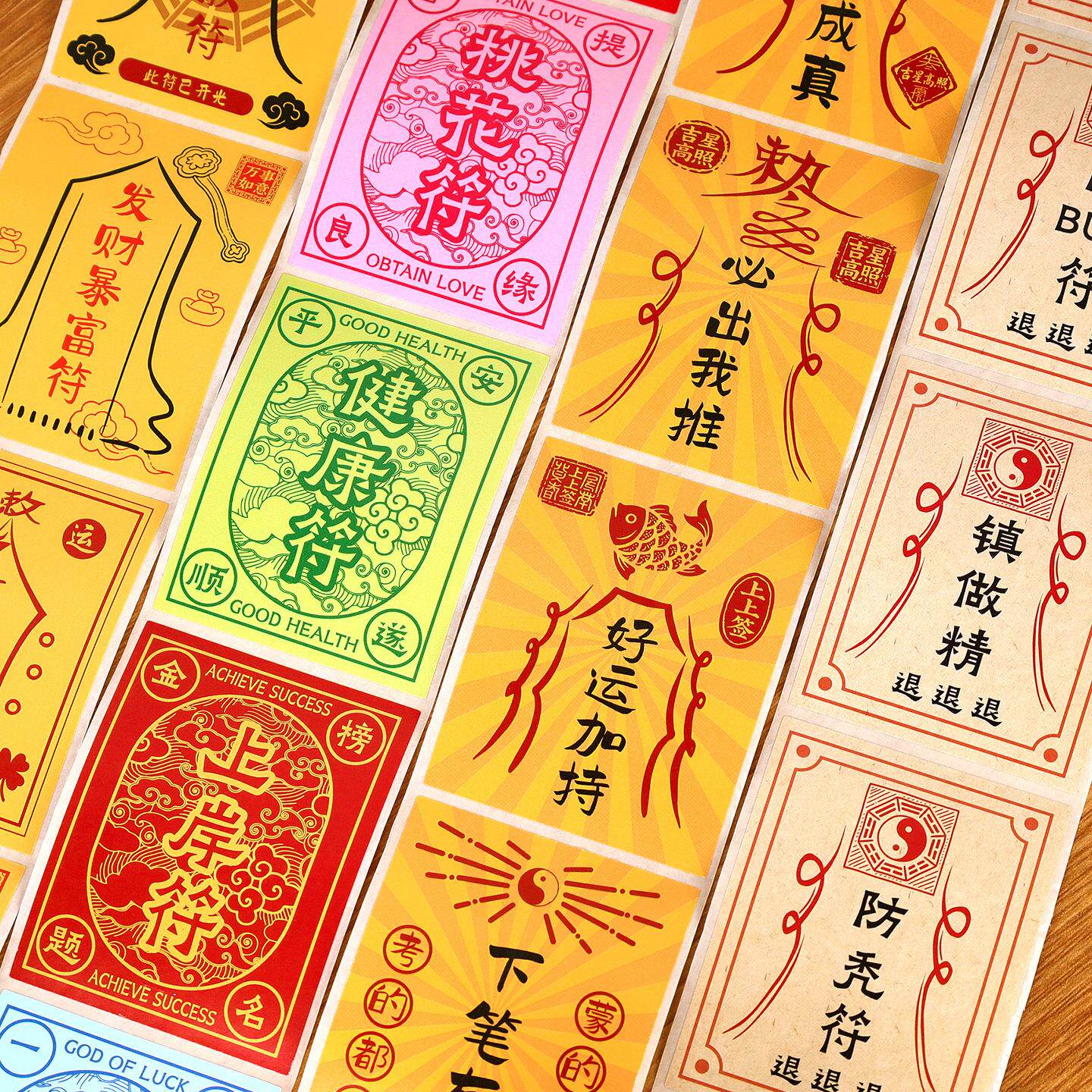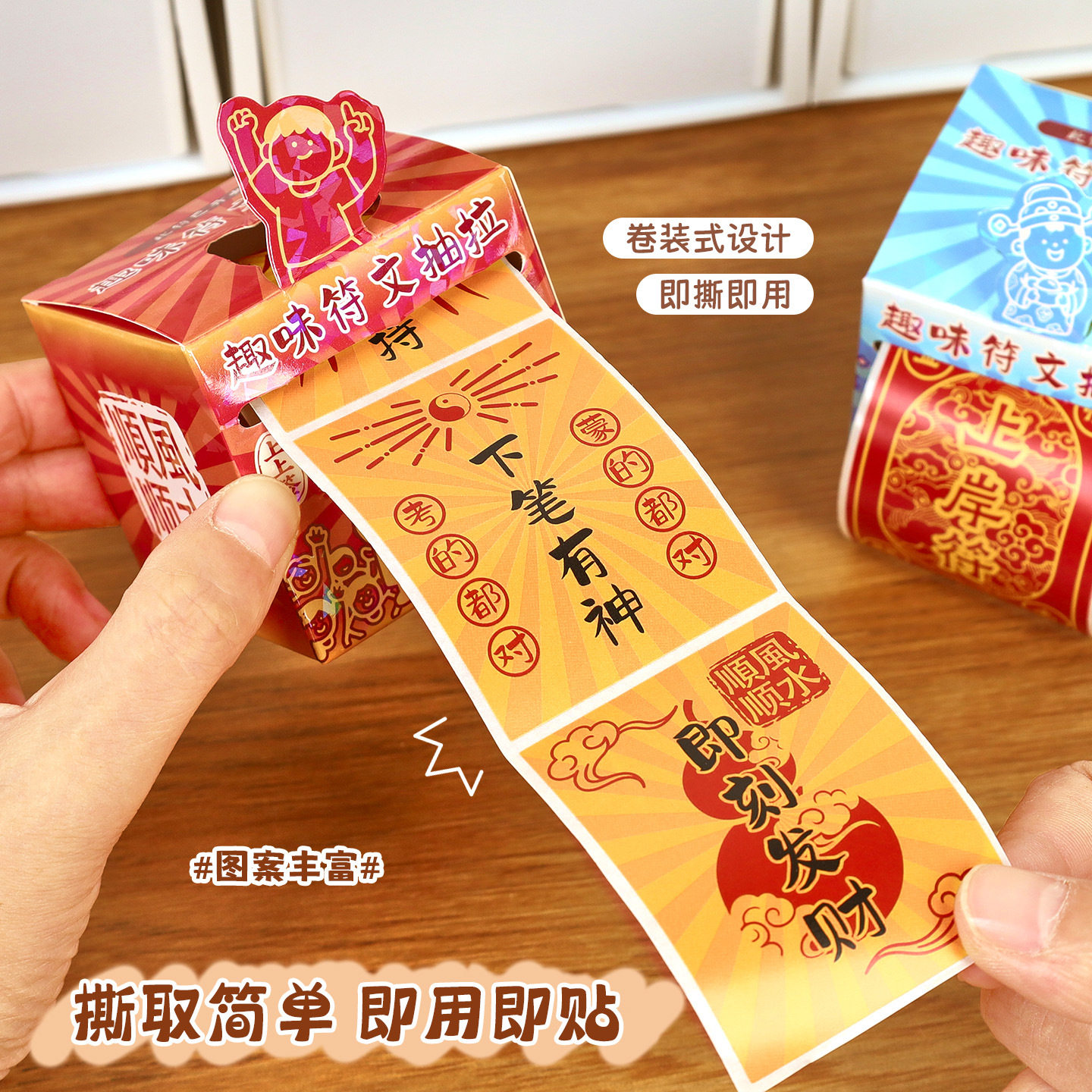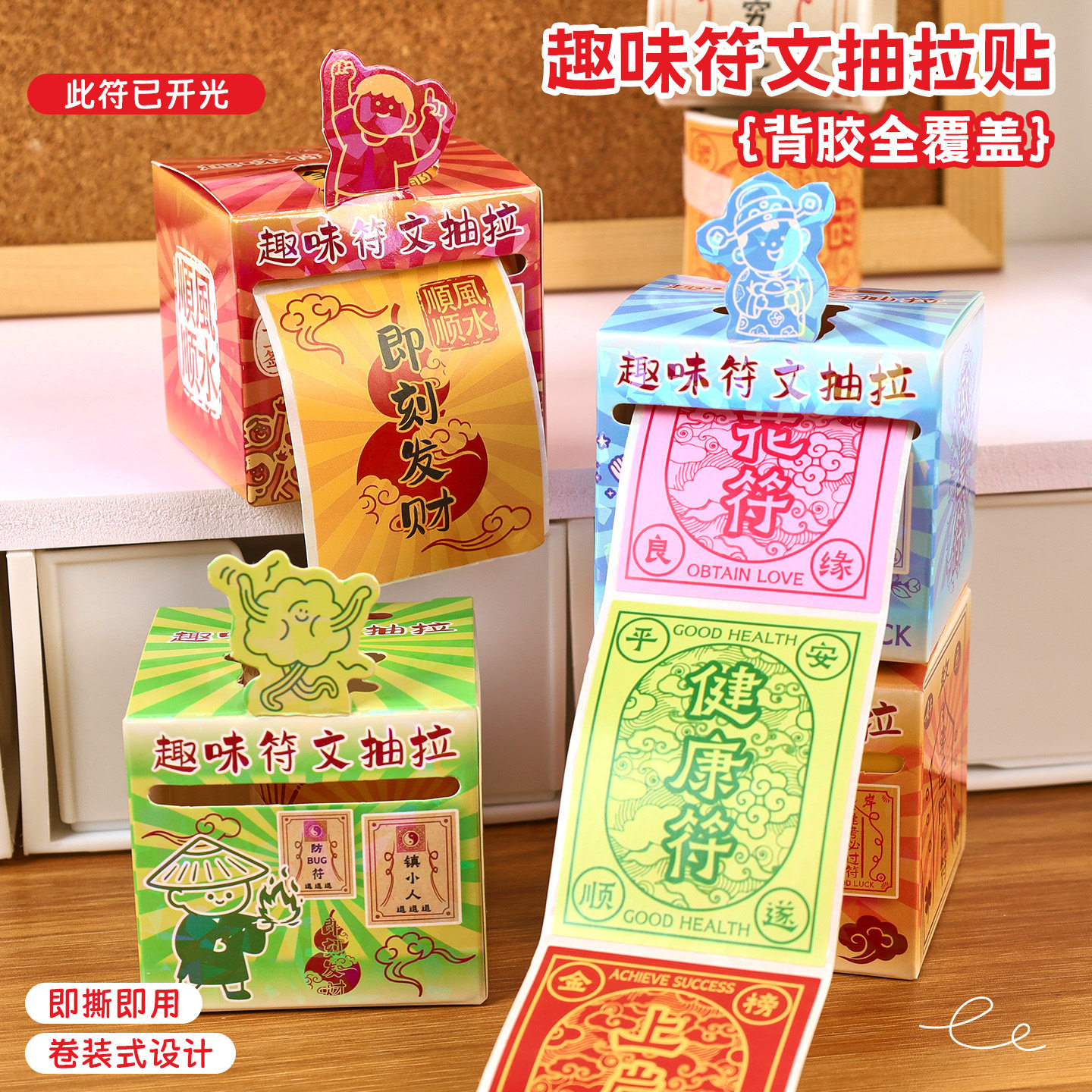 搞怪文字卷卷贴纸高颜值装正能量符文抽拉贴盒小学生可撕封口贴画