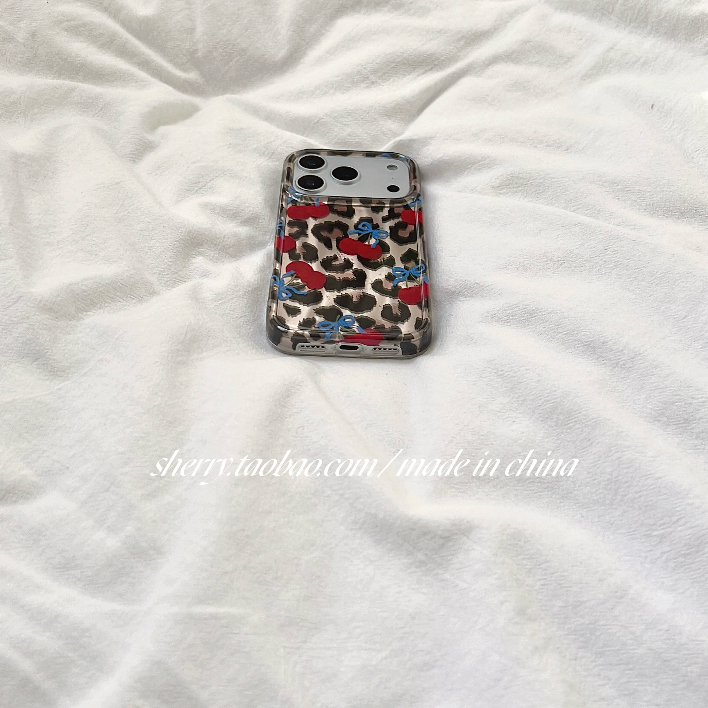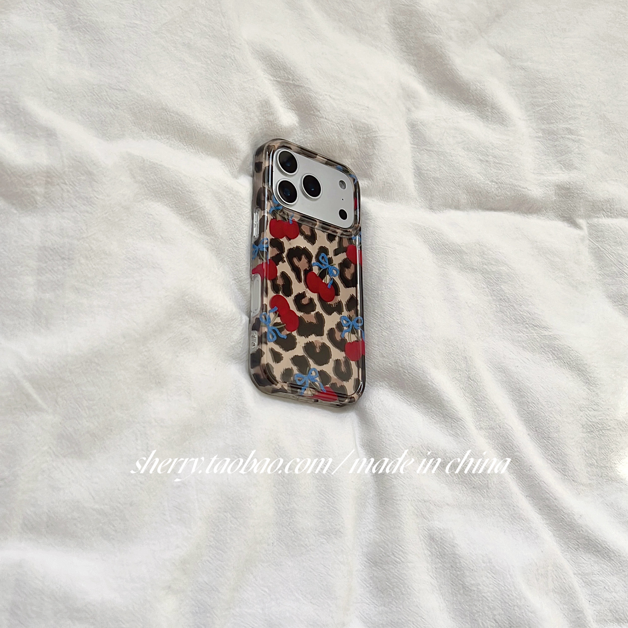 SHERRY*ins风甜酷时髦豹纹樱桃适用于苹果17ProMax手机壳iPhone16Pro小众少女心15简约14小清新卡通可爱高级