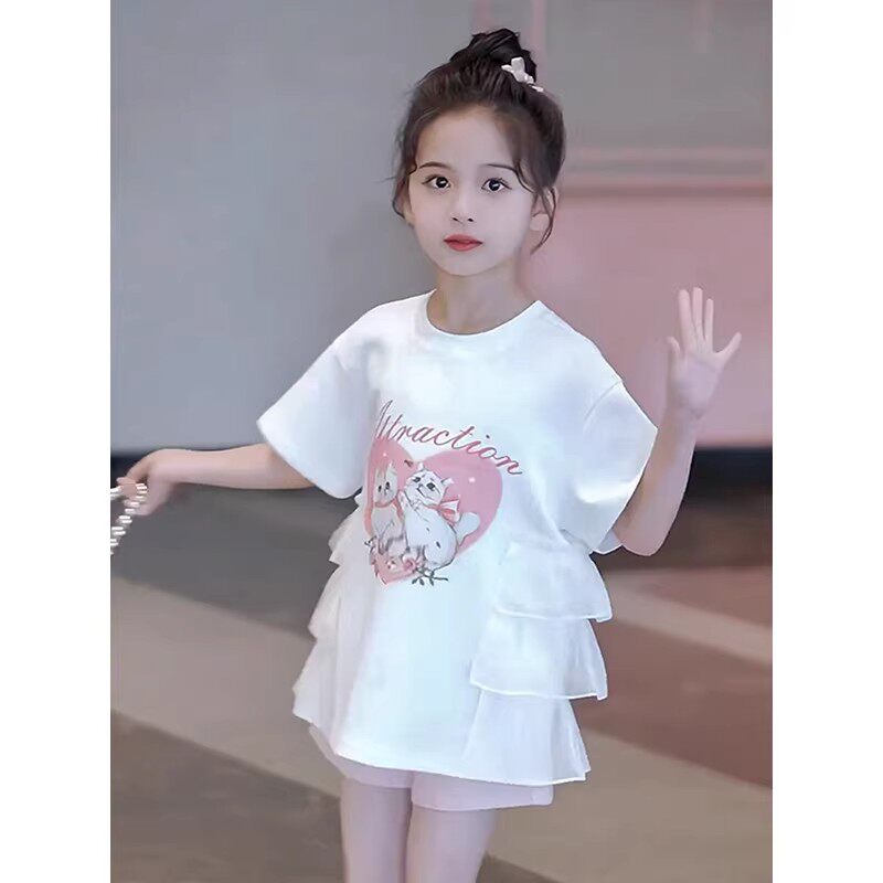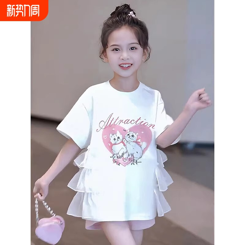 女童短袖T恤裙夏季2026新款潮儿童时髦裙子夏装女孩半袖洋气上衣