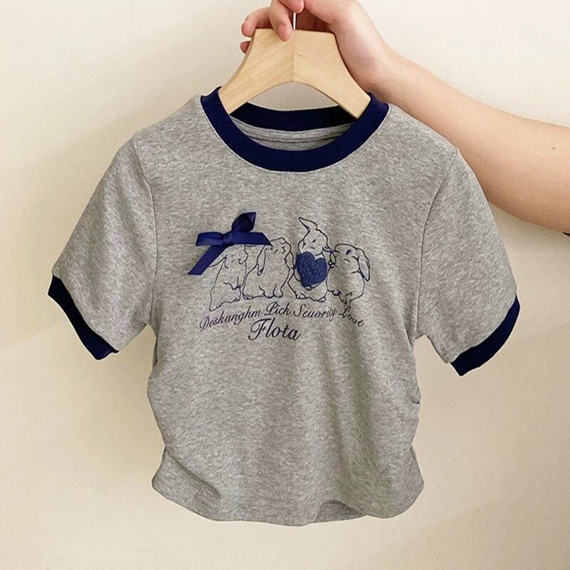 女童格子裙套装夏季2026新款儿童夏装女孩短袖T恤两件套兔子速干