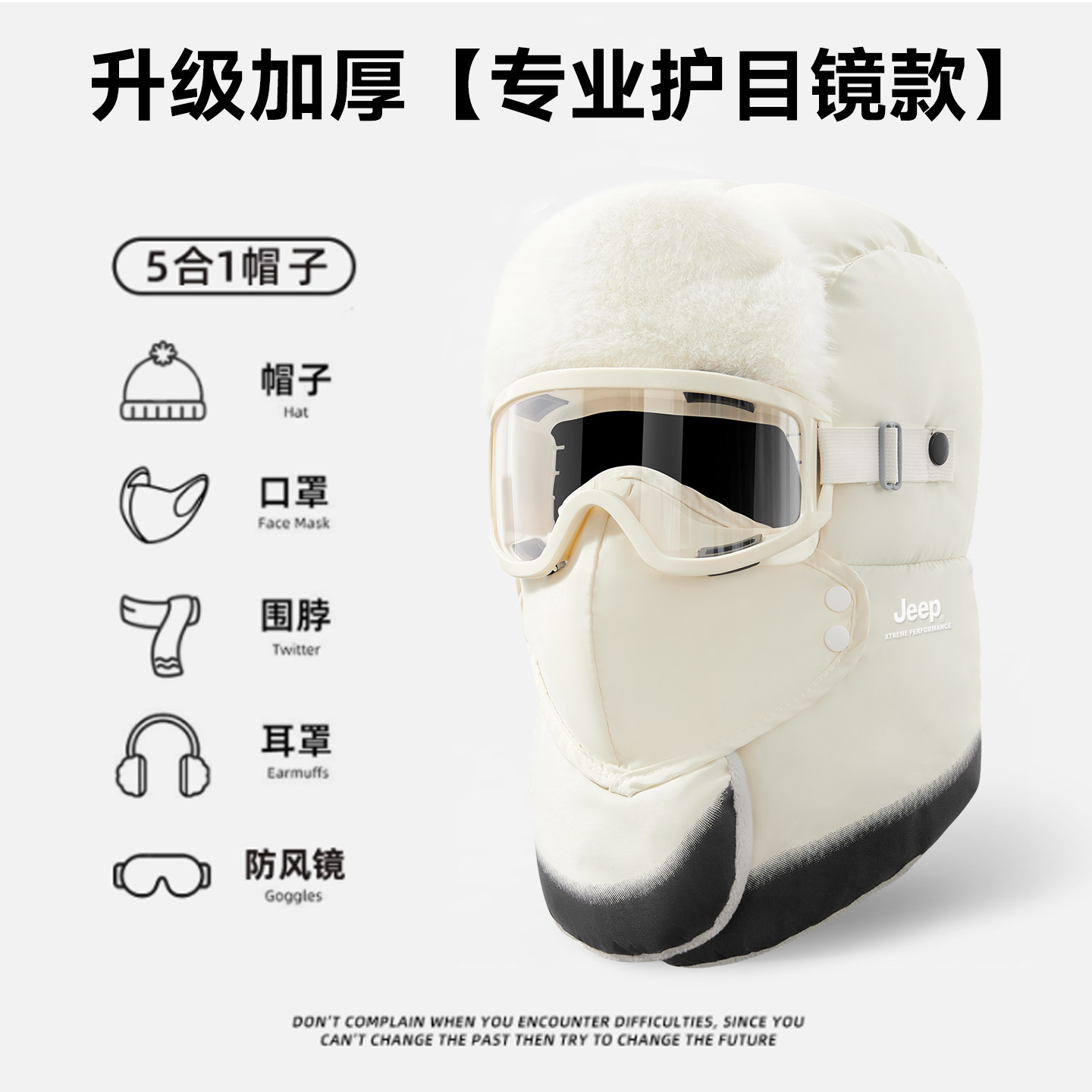 jeep吉普雷锋帽冬季女士防风加绒户外骑行防寒保暖神器戴头盔帽子
