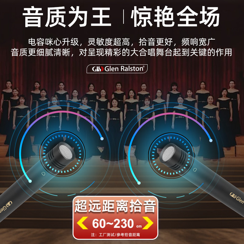 GLSD格伦士顿一拖四专业无线大合唱话筒乐器演出电容小振膜麦克风