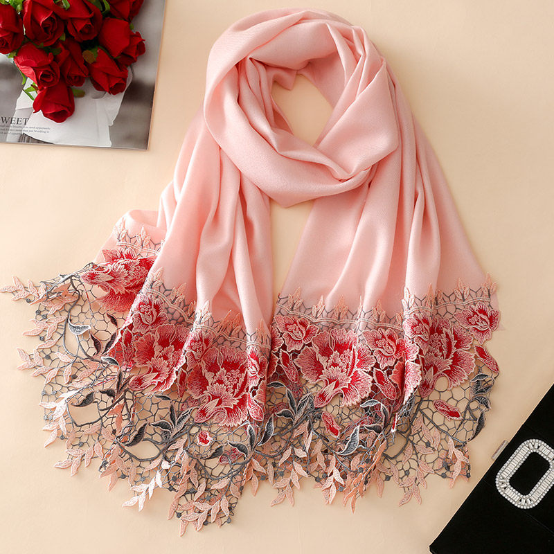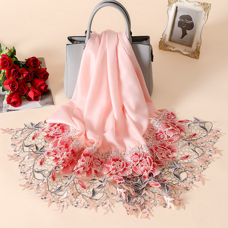 上海故事2025秋冬新款围巾女绵羊毛刺绣加厚保暖披肩女送长辈礼盒