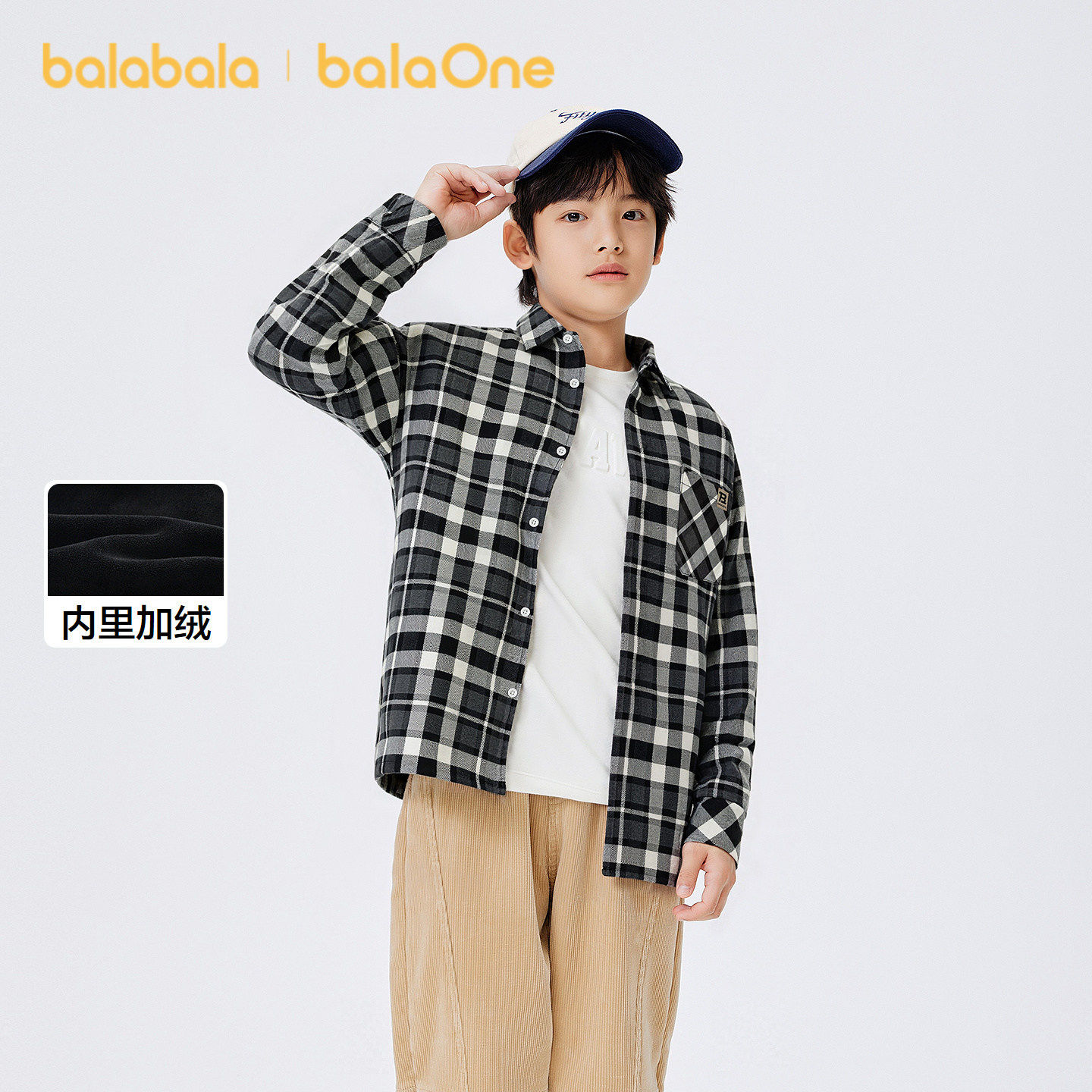 巴拉巴拉童装男童衬衫儿童上衣新款大童2025秋冬加绒保暖格子百搭