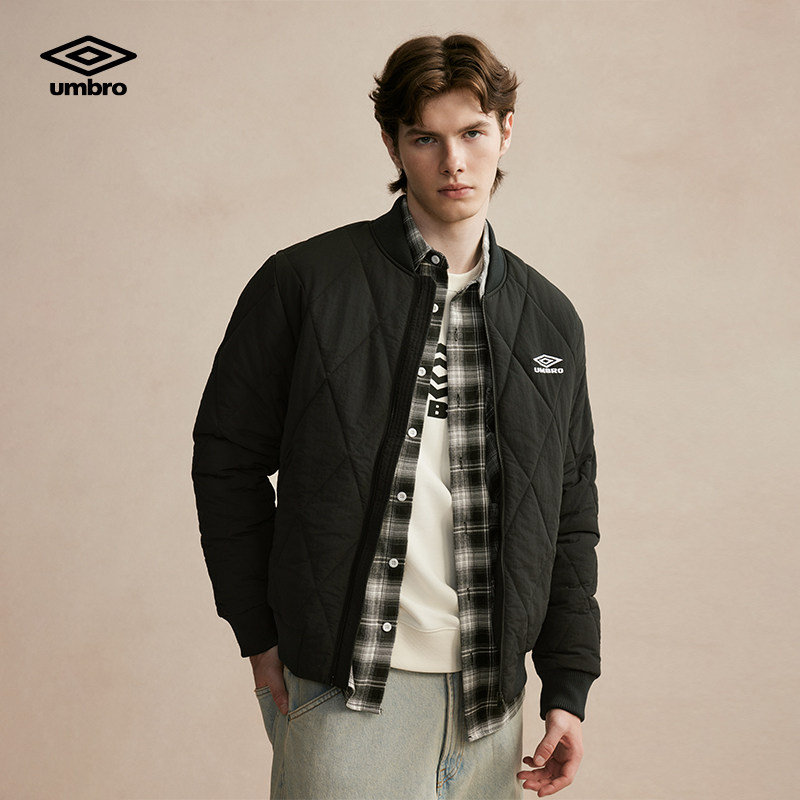 umbro茵宝官方运动经典款时尚珩缝菱形格棉袄加厚夹克棉服棒球服
