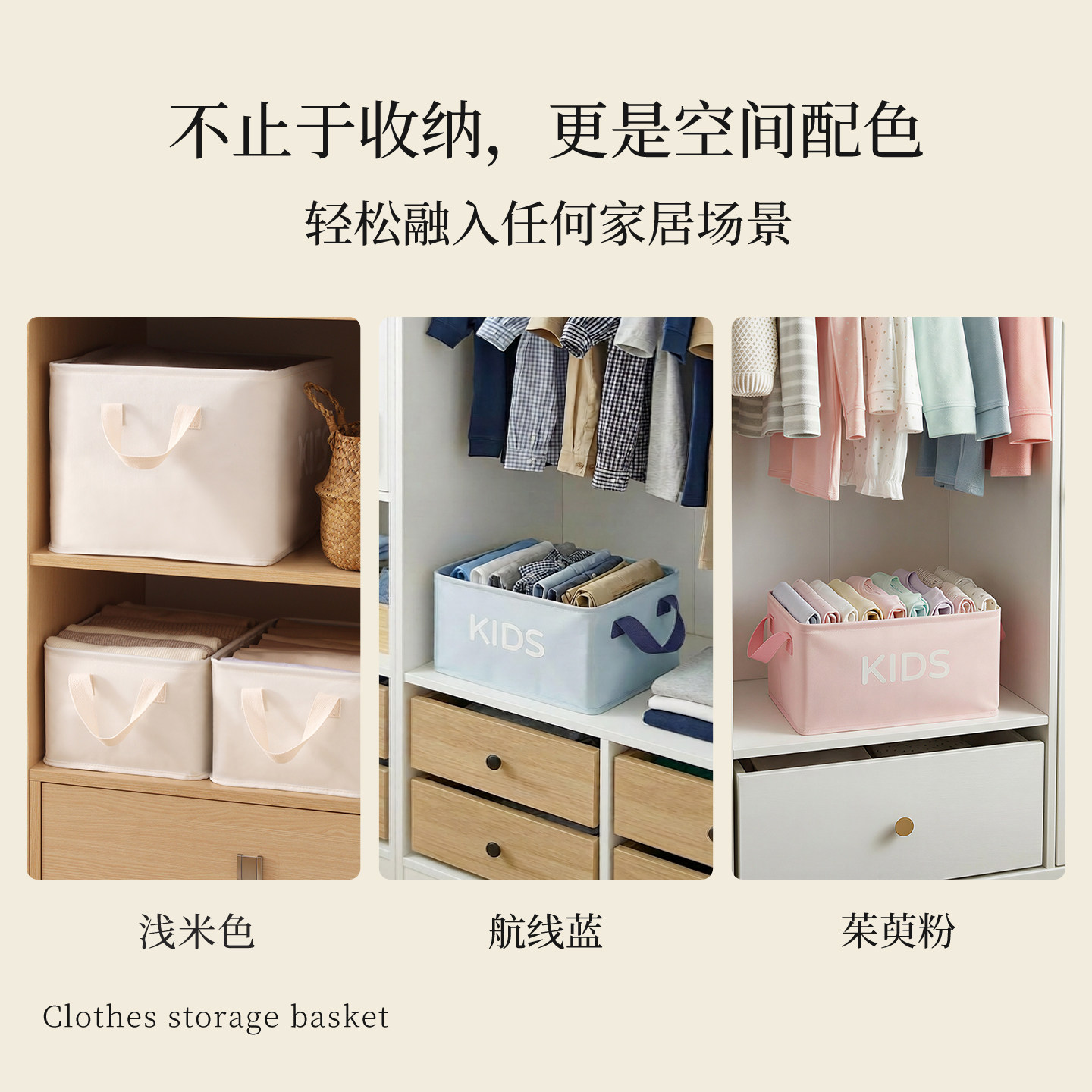 拍1发4衣服收纳筐神器布艺装衣物衣柜分层收纳箱家用框裤子整理盒