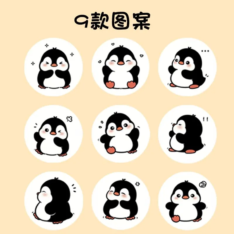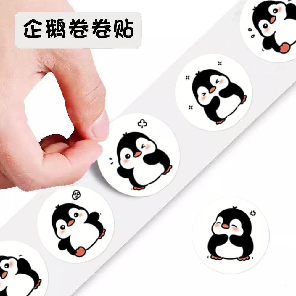 卡通腮红企鹅卷卷贴学生手账手机装饰贴老师奖励贴外卖包装封口贴