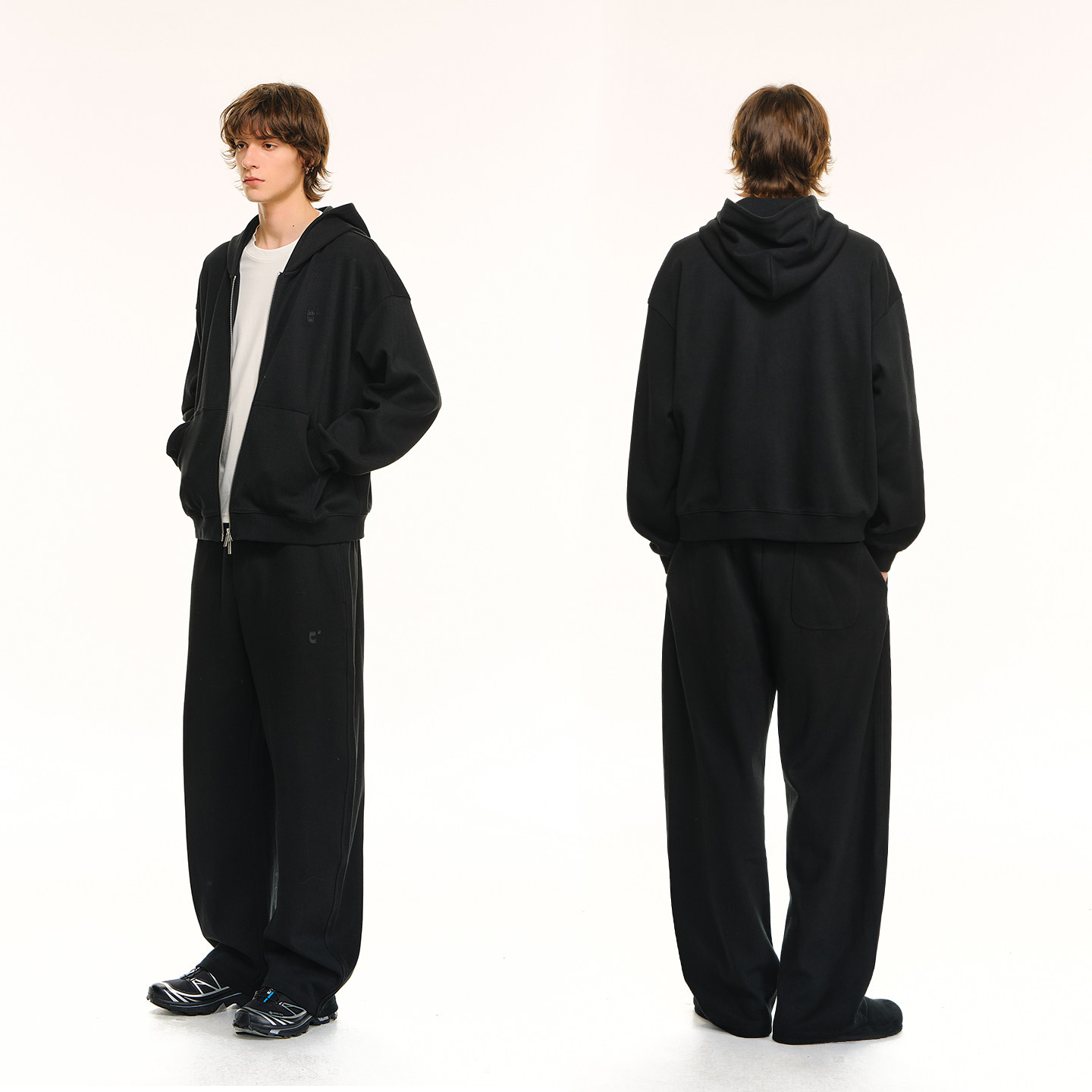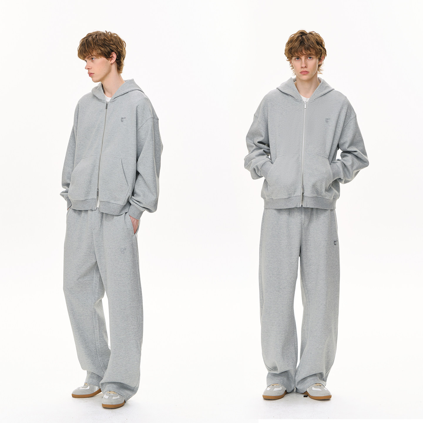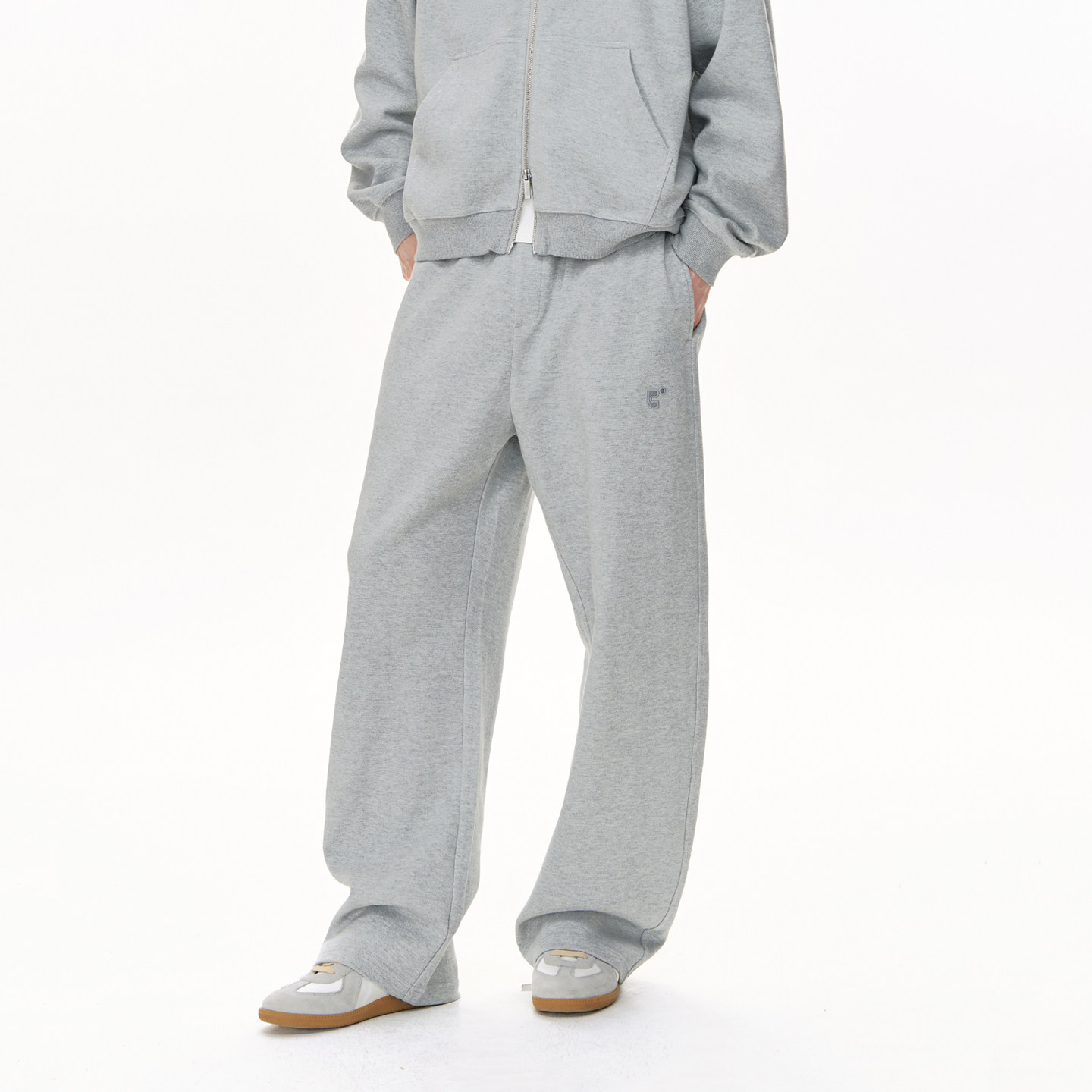 CLIMAX VISION重磅肌理垂感珠地棉刺绣直筒宽松休闲弯刀裤卫裤