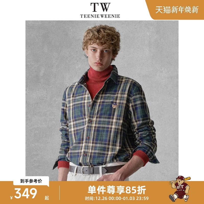 Teenie Weenie小熊男装简约休闲宽松刺绣拼接格纹翻领衬衫