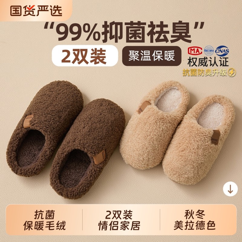买一送一棉拖鞋女士2025新款冬季情侣家居一对抗菌防滑毛拖鞋男款