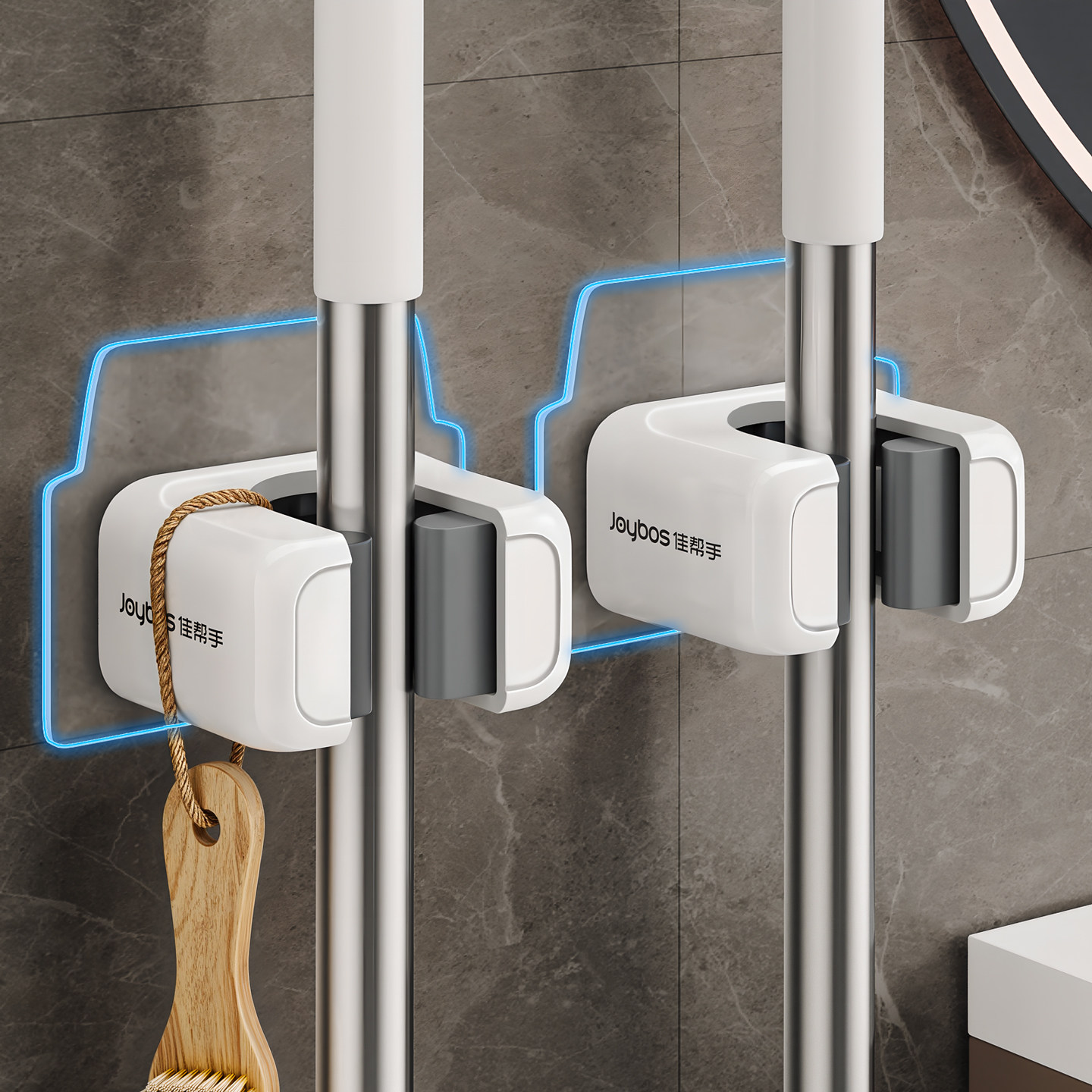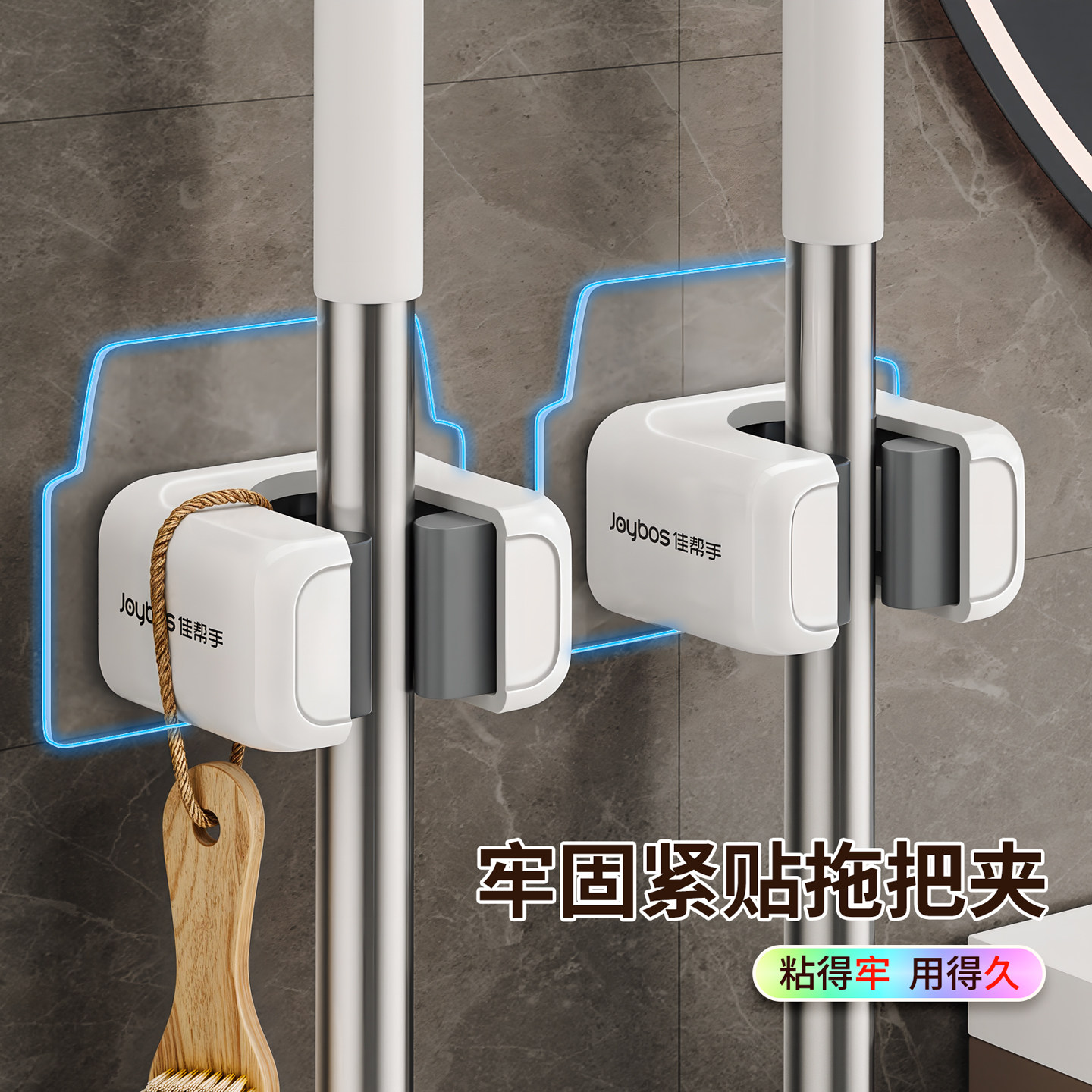 佳帮手拖把强力挂钩拖把壁挂夹免打孔卫生间挂扫把固定架墩布挂架