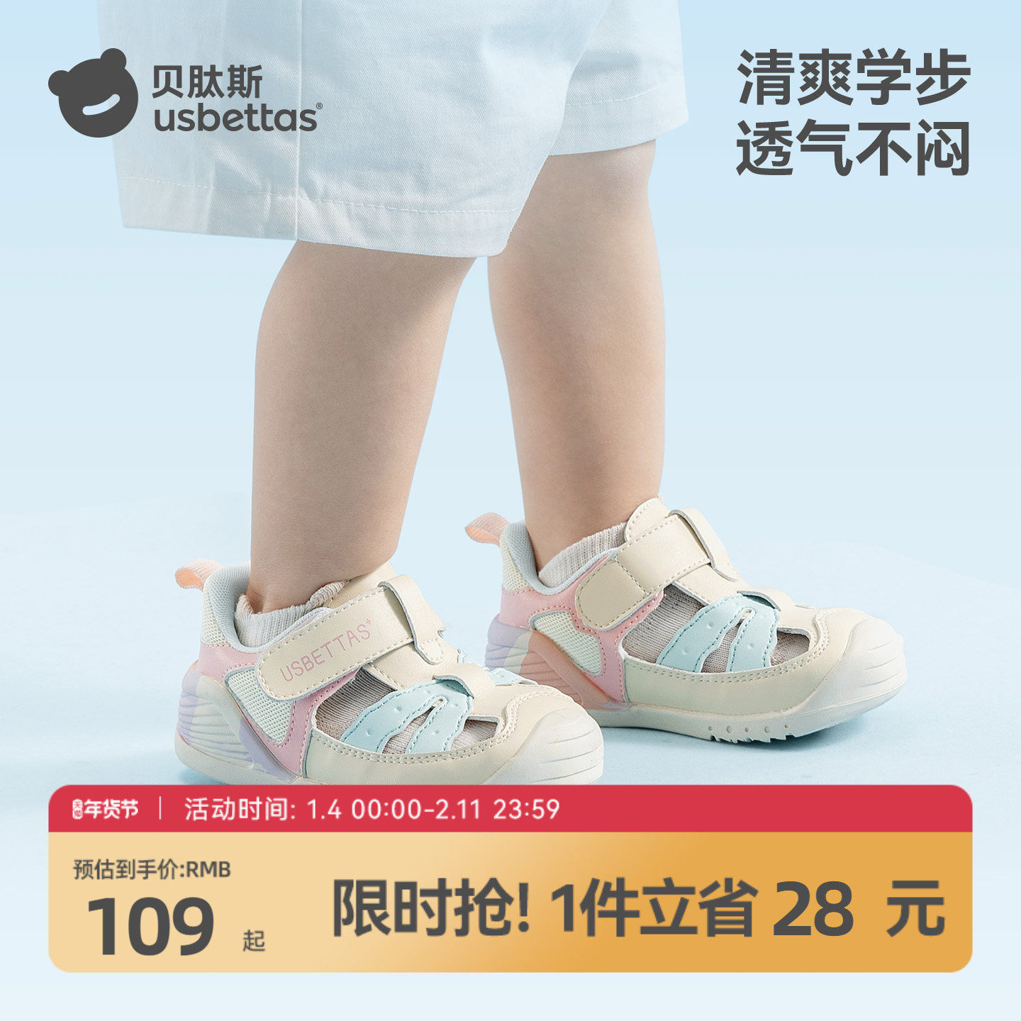 贝肽斯儿童凉鞋男童女童夏款2025新款女宝学步网面透气镂空鞋子