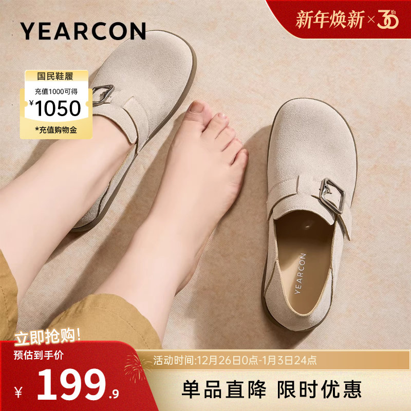 意尔康女鞋2025秋季大码女士全包勃肯乐福鞋懒人复古休闲平底单鞋