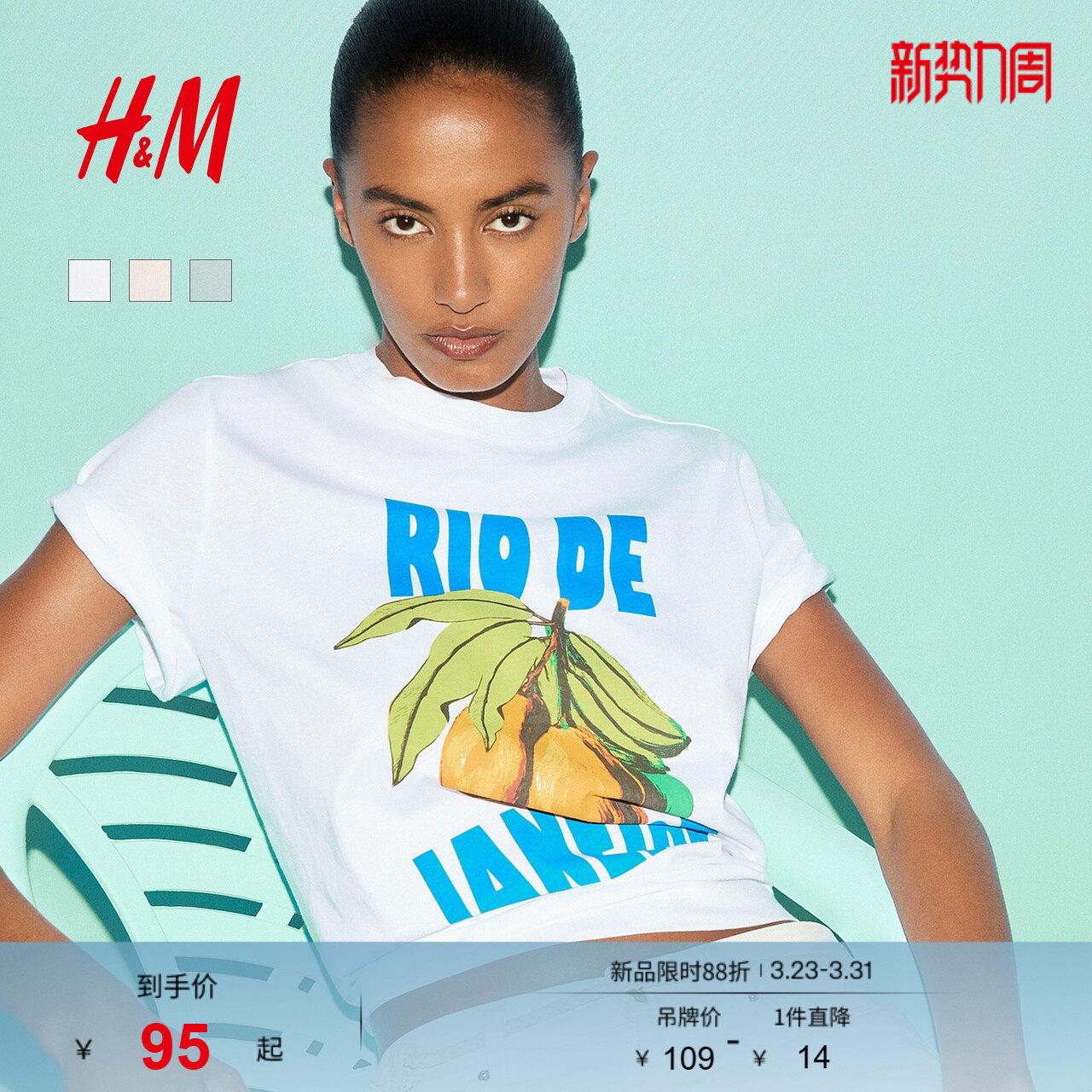 HM女装T恤春季印花宽松美式休闲时尚圆领短袖上衣1293967