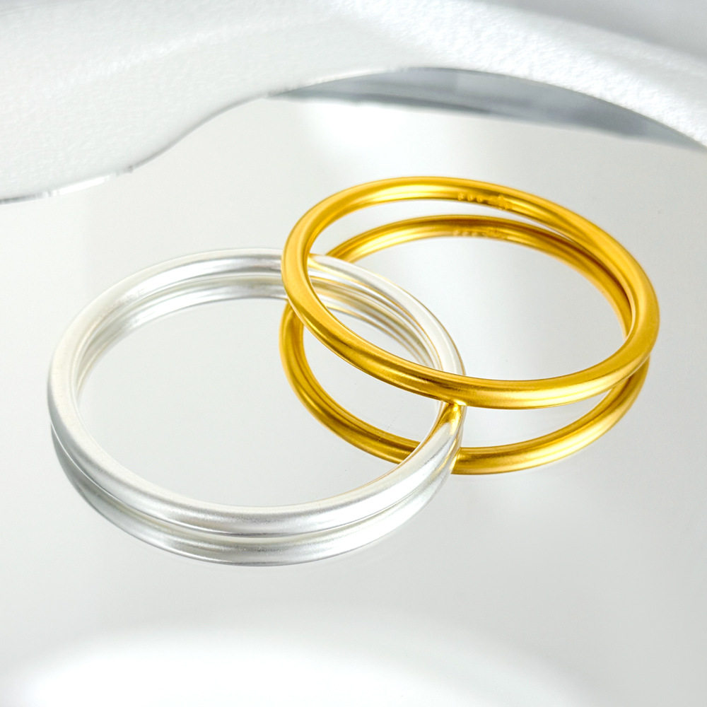 周六福古法银手镯女磨砂S999足银素圈镯情侣节日礼物送男友送女友