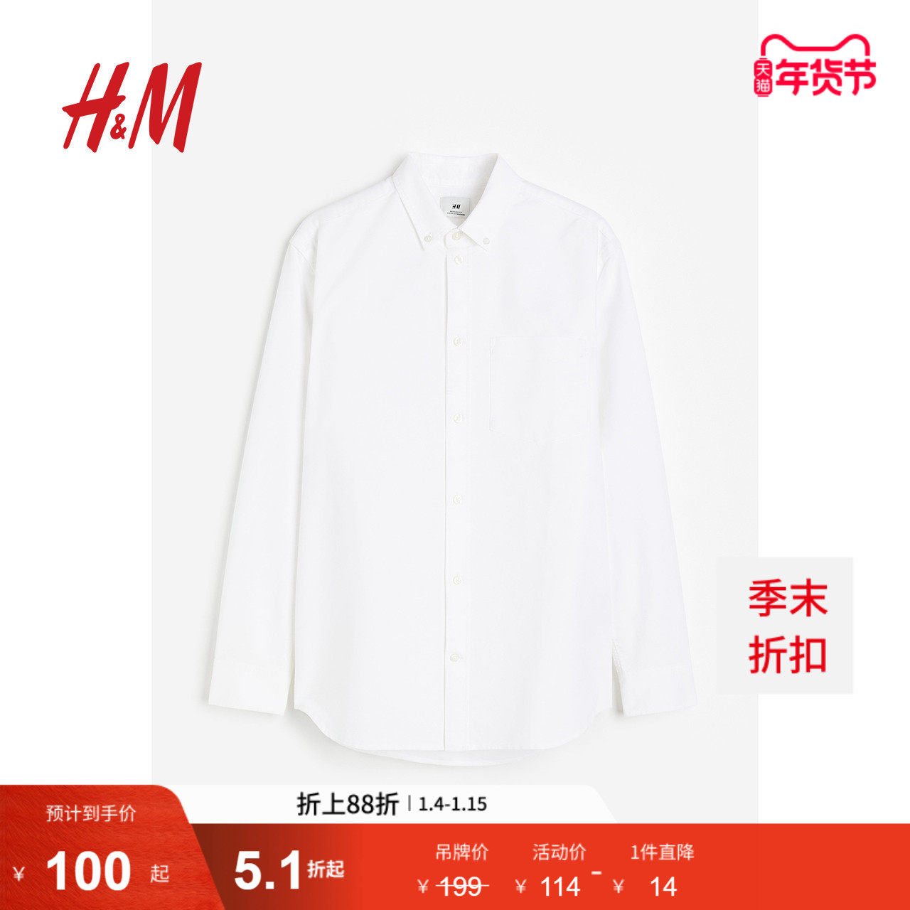 HM男装衬衫冬季时尚棉质长袖衬衣男士衬衣休闲穿搭上衣1013956