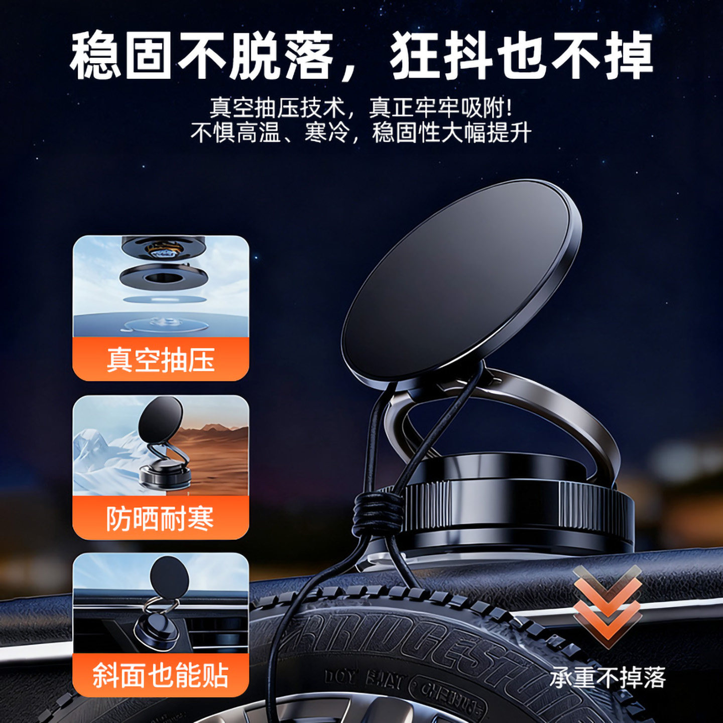 新款磁吸车载手机支架真空吸附仪表台汽车通用桌面多功能导航支架