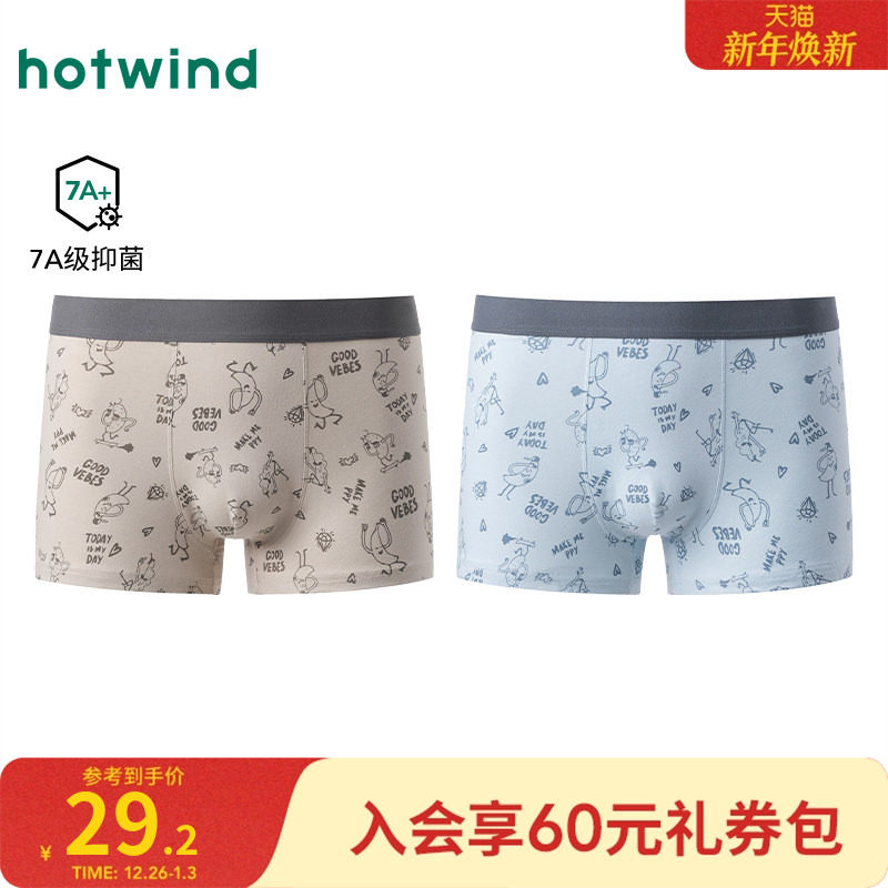 热风男士内裤2025年秋季新款趣味线稿青少面平角内裤抑菌亲肤短裤