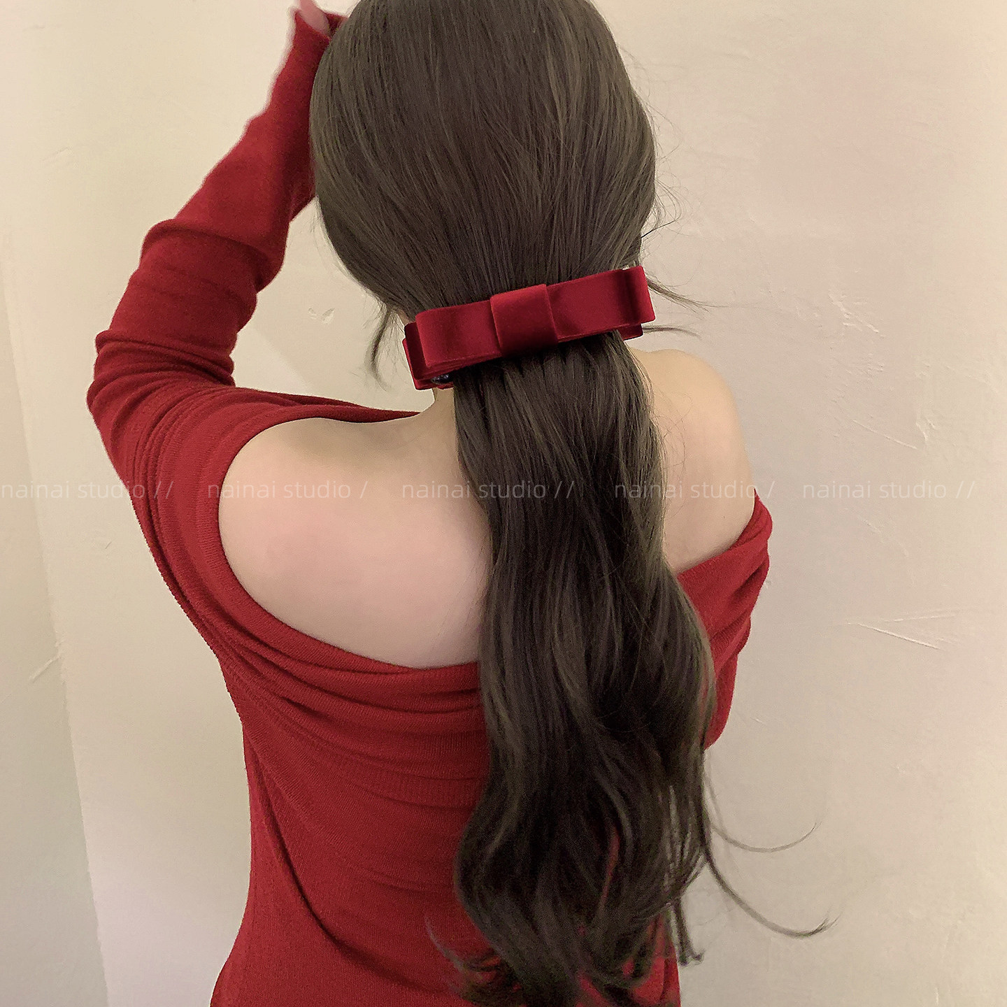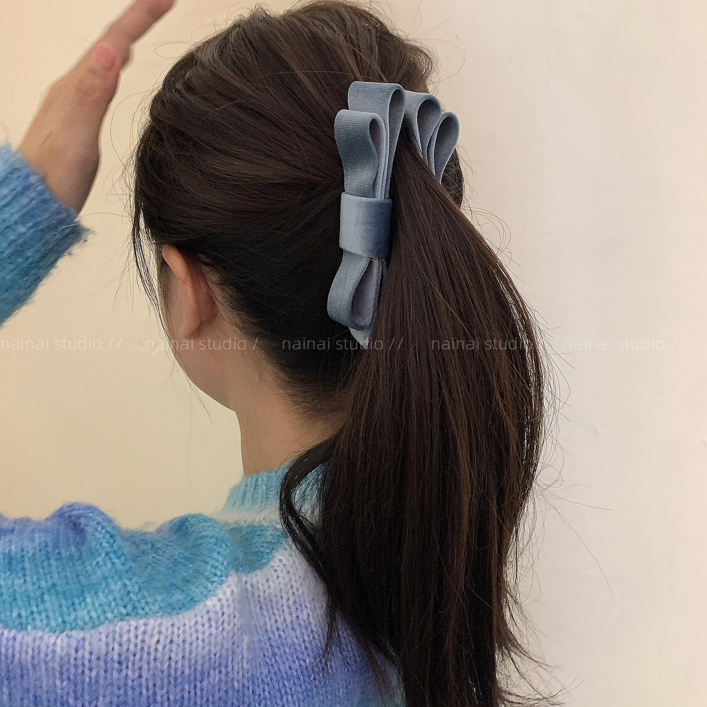 定型蝴蝶结!高品质版本丝绒香蕉夹双层韩国高马尾夹竖夹发饰发夹
