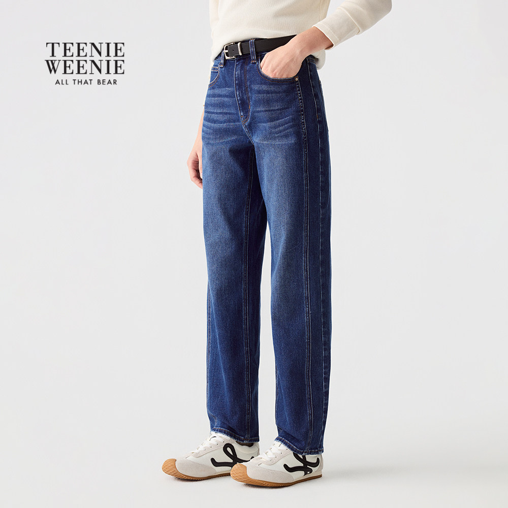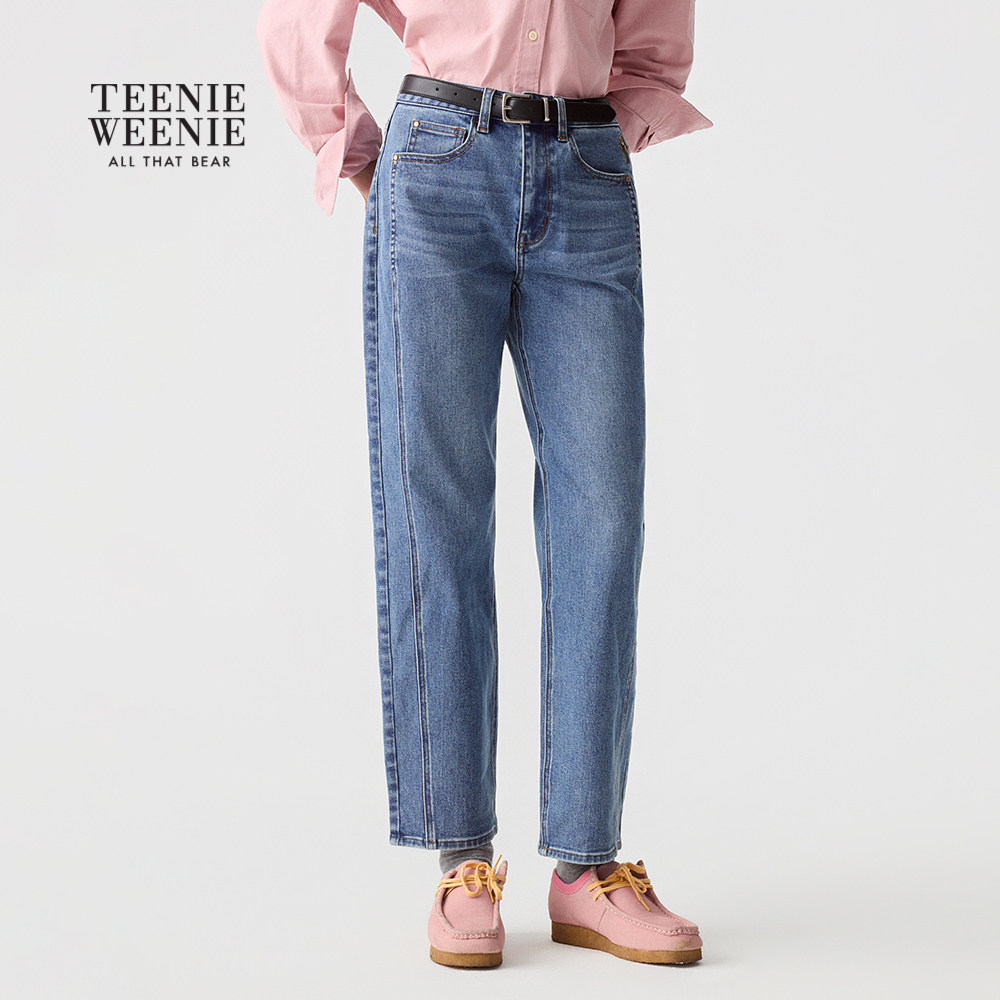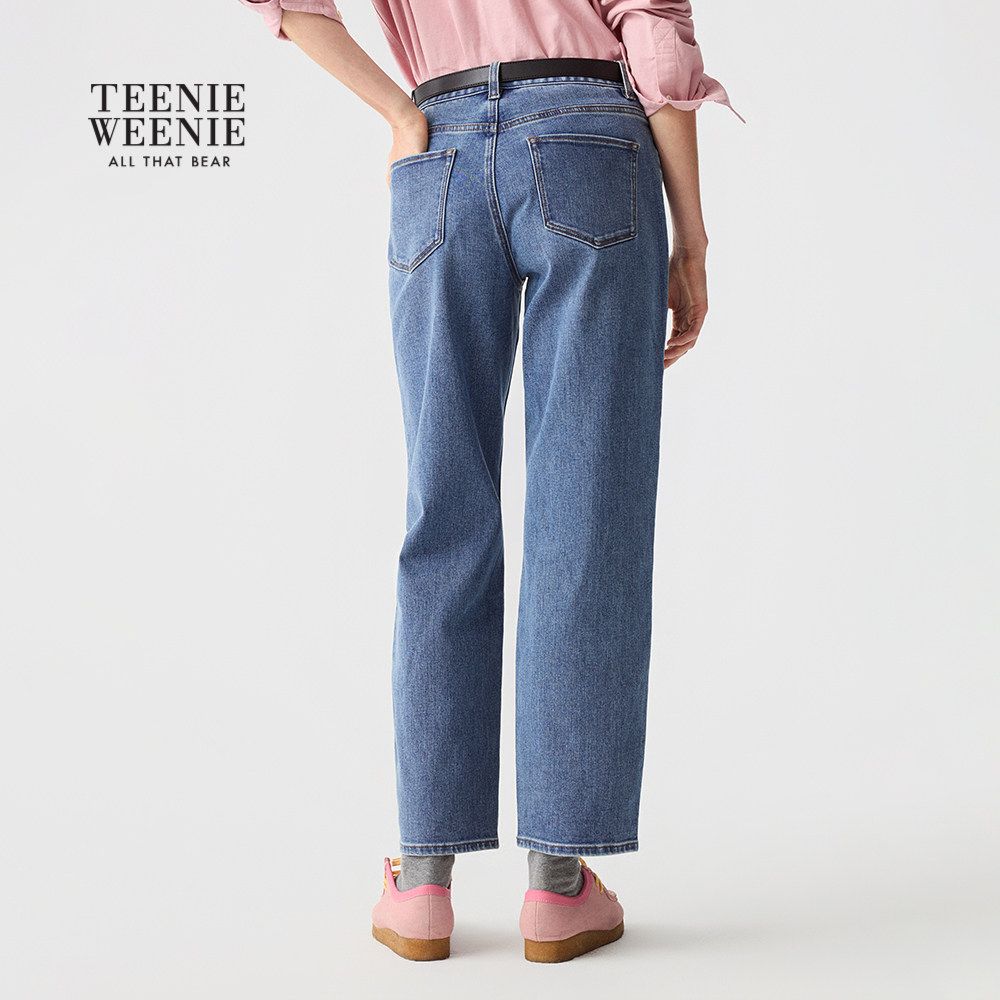 TeenieWeenie小熊女装牛仔裤秋冬季柔软舒适休闲松弛感直筒裤长裤