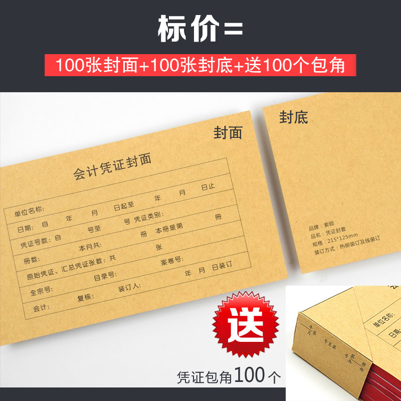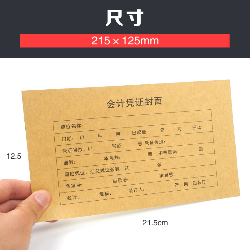 凭证封面215×125mm尺寸小号财务会计记账凭证封面牛皮纸封皮包角