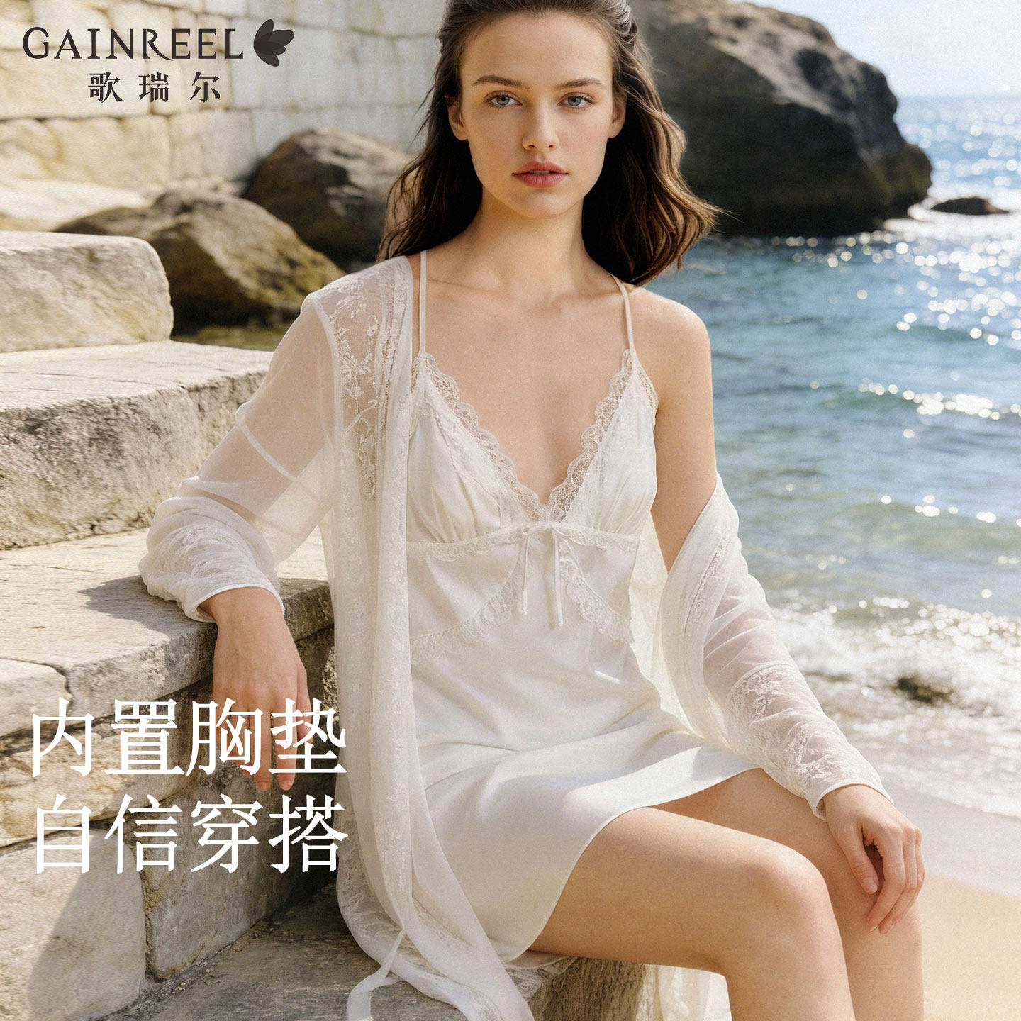 歌瑞尔美背蕾丝吊带睡裙带胸垫女睡袍法式纯欲深V性感睡衣家居服