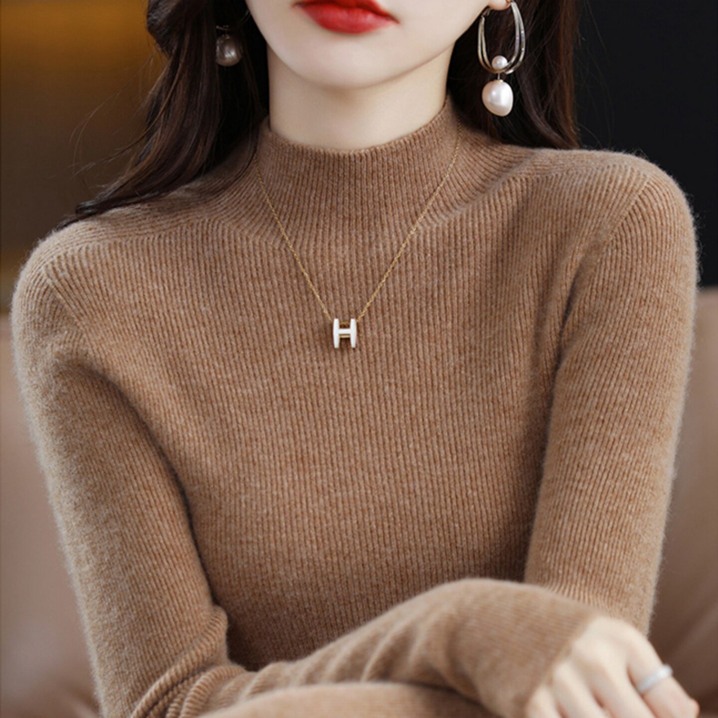 一线成衣无缝女半高领套头打底衫秋冬内搭毛衣修身长袖羊毛针织衫