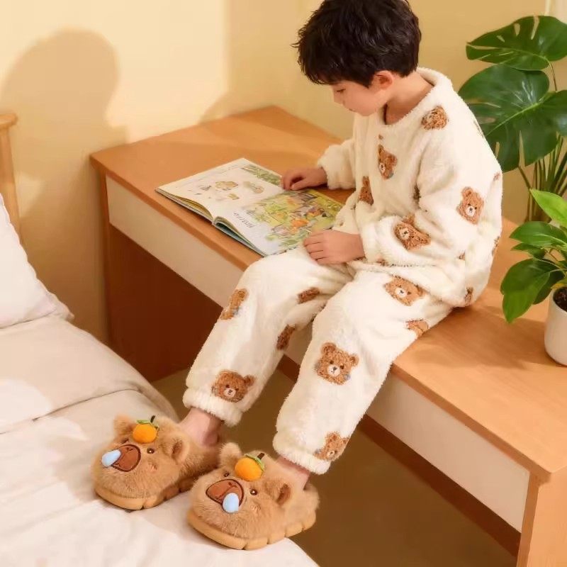 2025秋冬季新款儿童棉拖鞋男童女童卡皮巴拉毛绒室内家居鞋防滑
