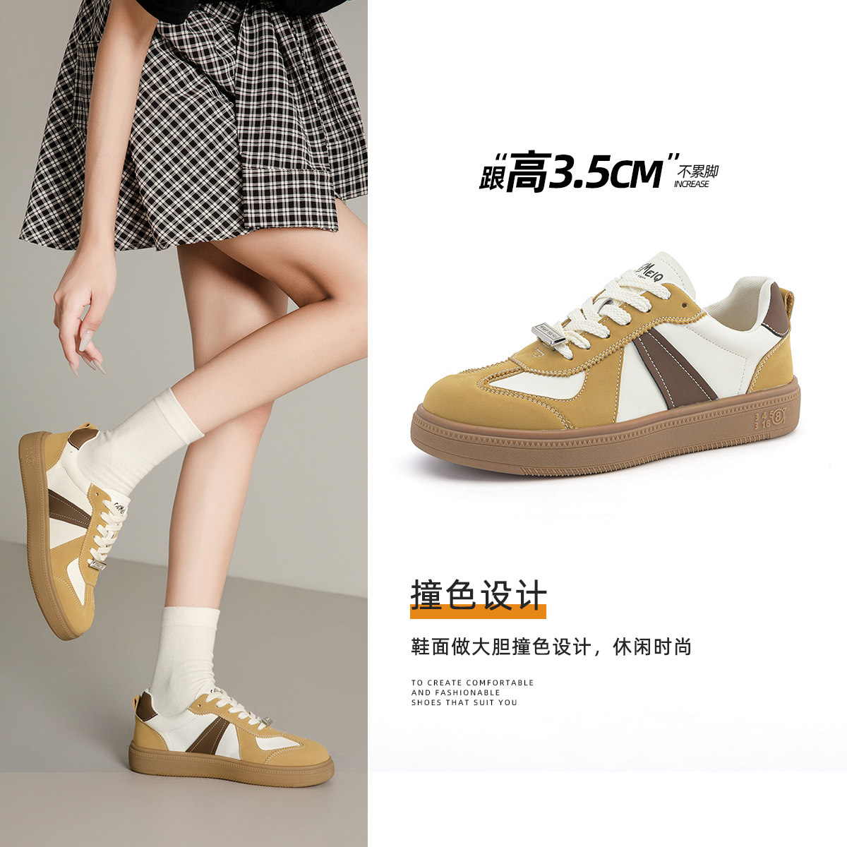 【明星同款】Wander around 复古棕色厚底增高休闲板鞋男女同款
