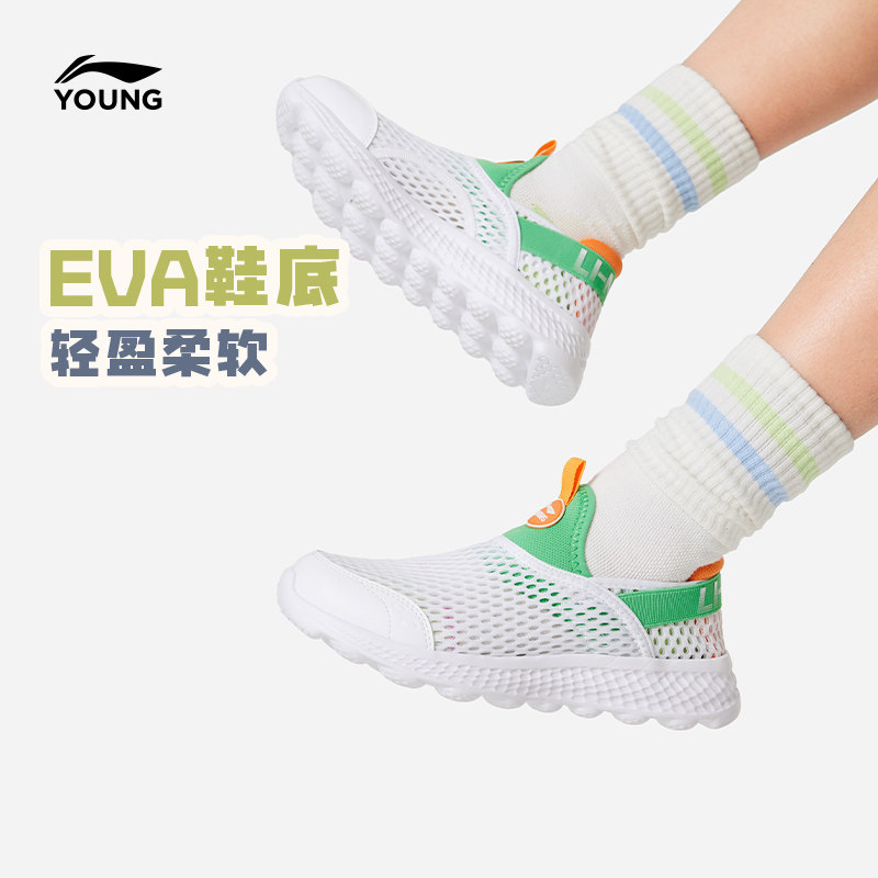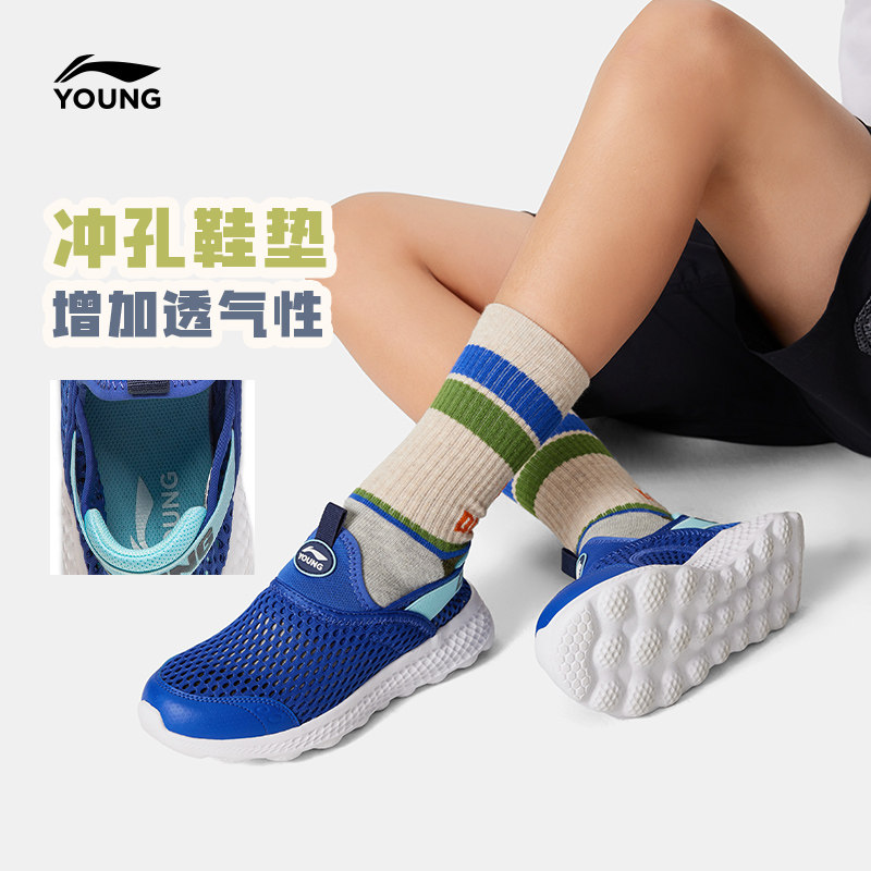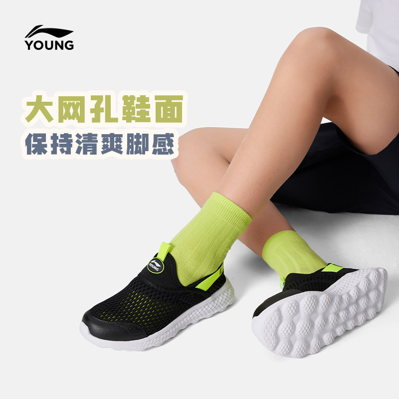 李宁男童单网运动鞋舒适男女童中大童网面透气网鞋舒适一脚蹬鞋子