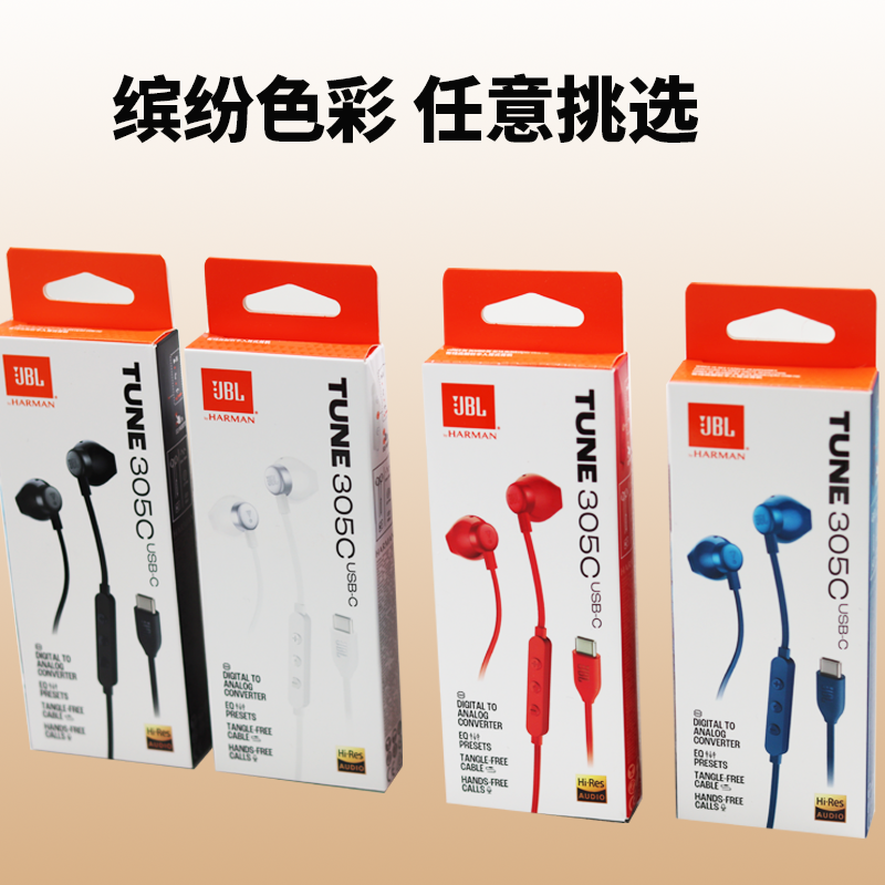 JBL TUNE305C 有线耳机半入耳式Type-C接口便捷三键线控