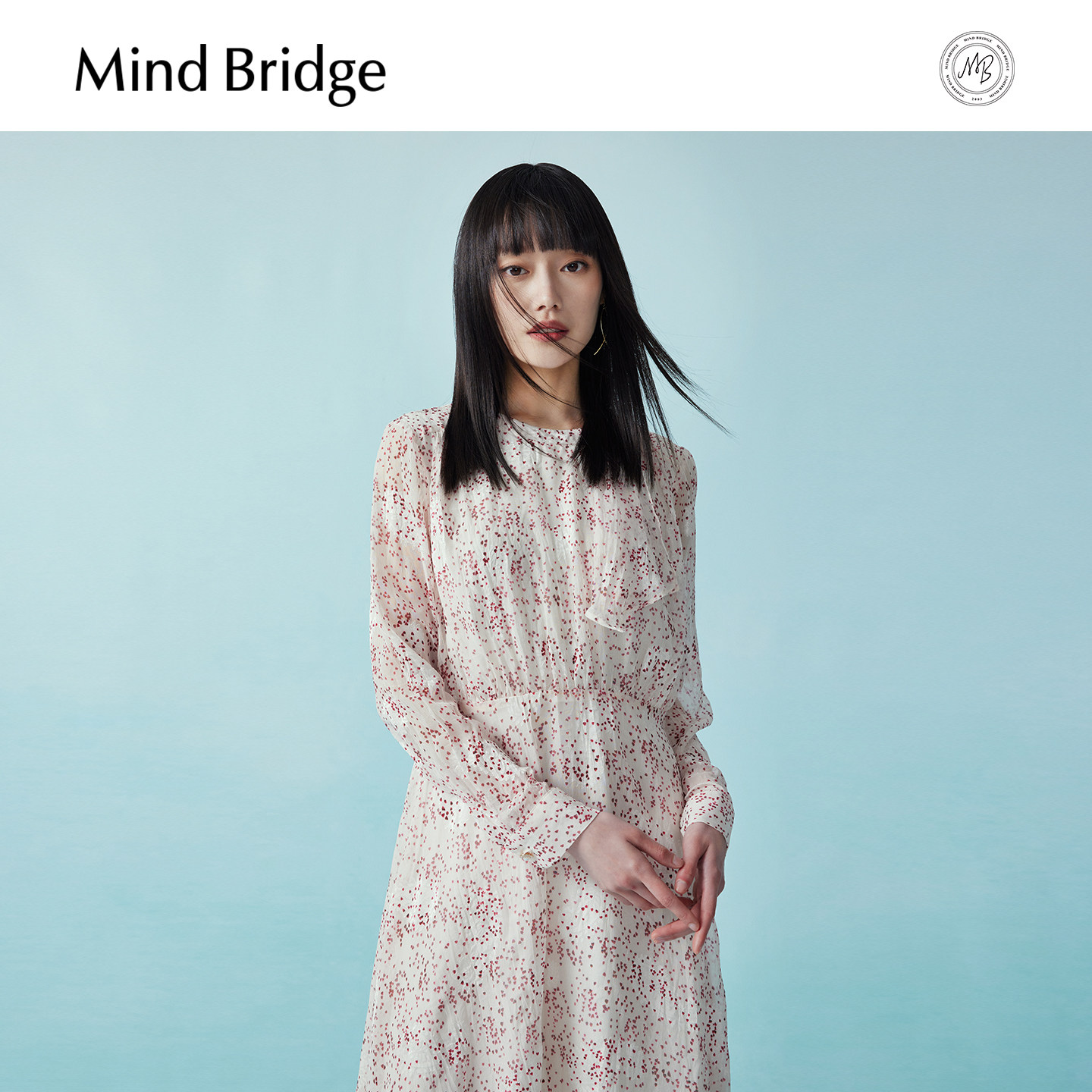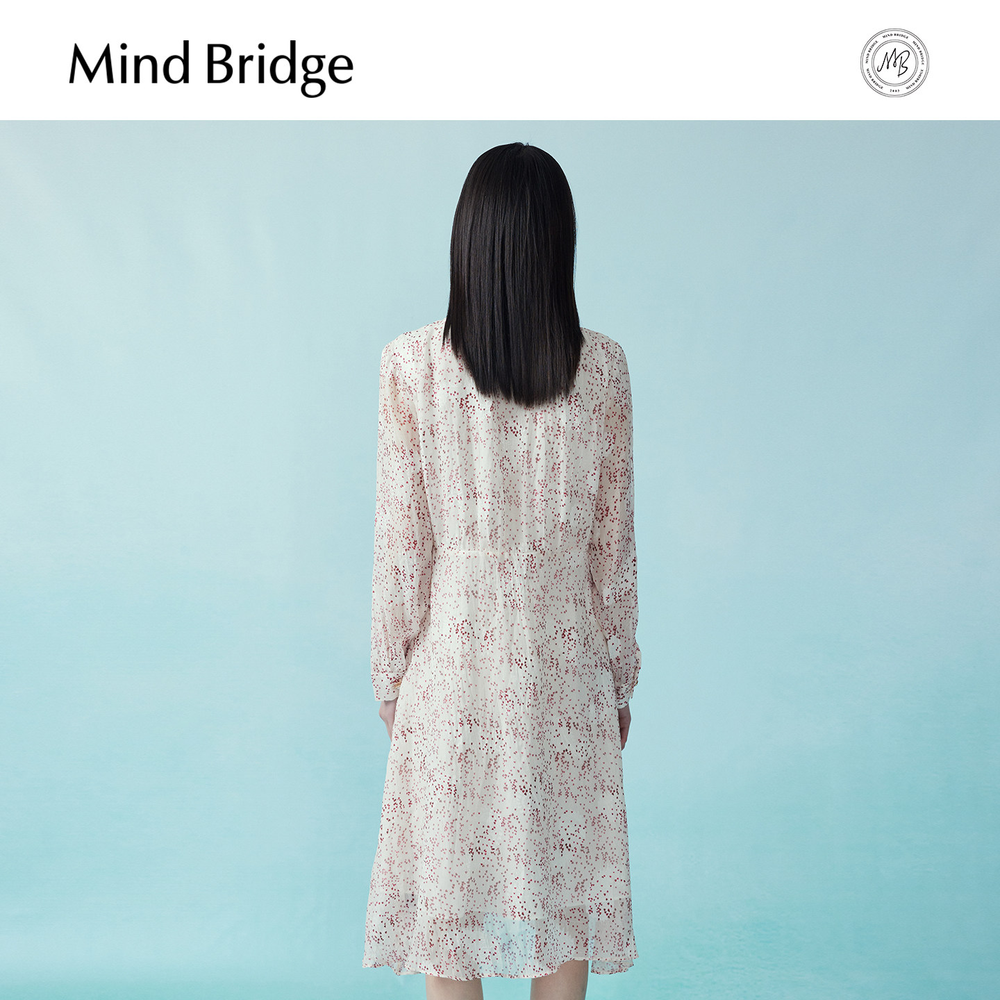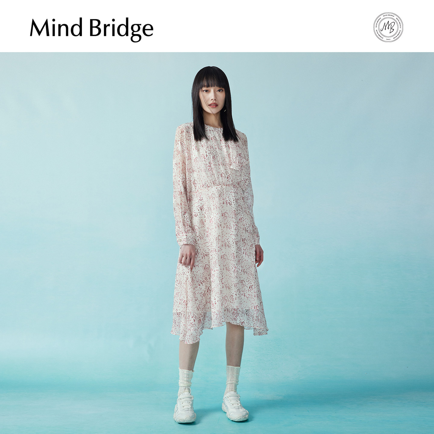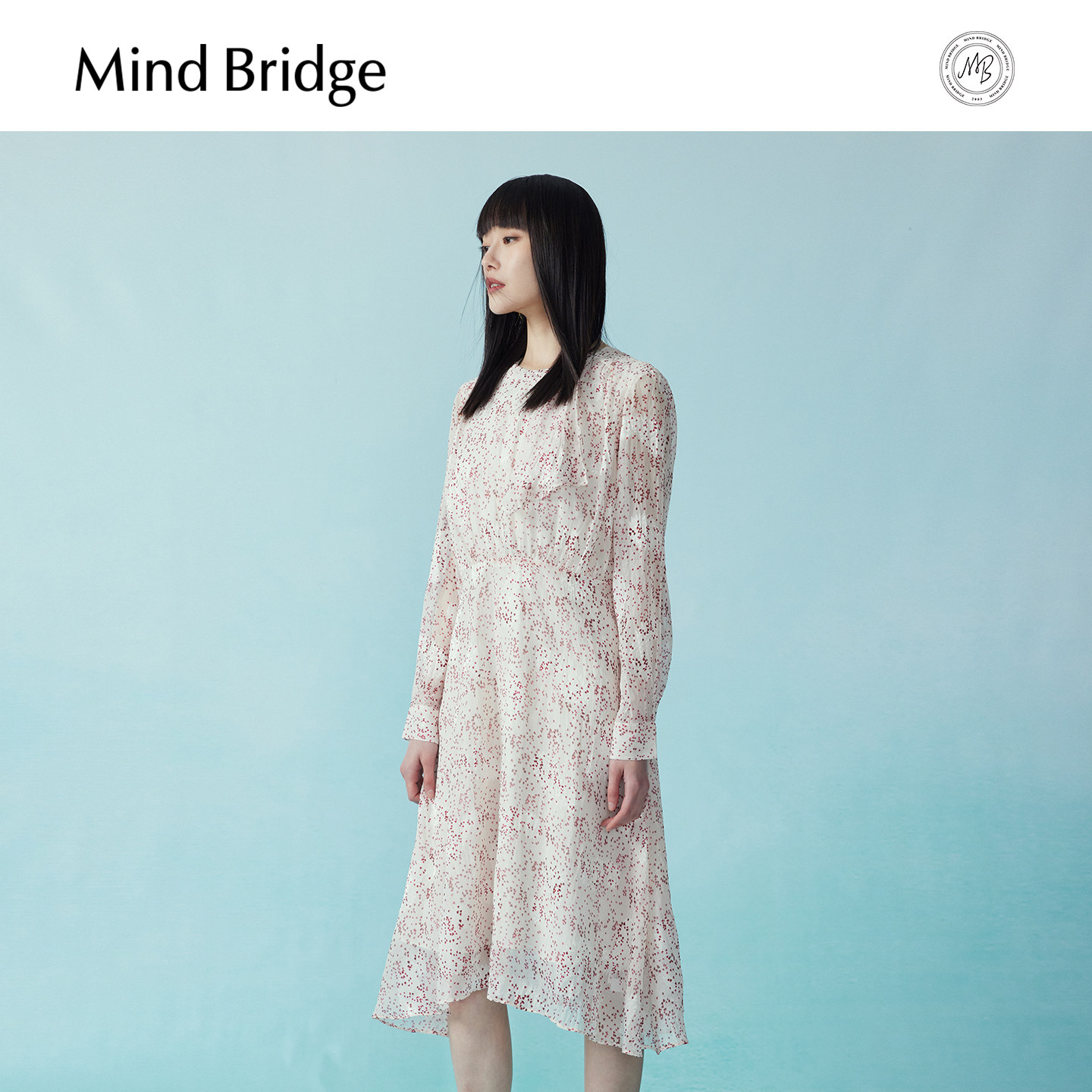 Mind Bridge秋季碎花连衣裙女士韩系气质中长裙2025新款长袖裙子