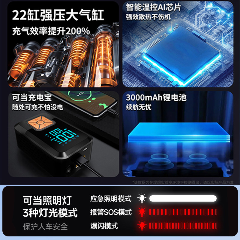 凌匠车载充气泵双缸高压多功能SUV大功率MPV电动汽车用轮胎打气泵