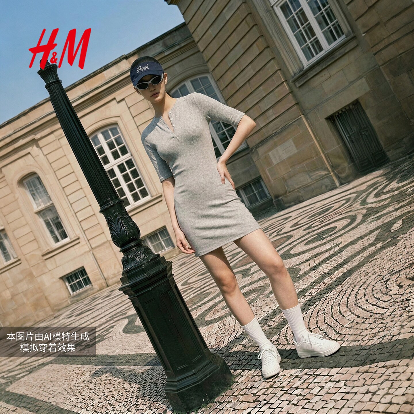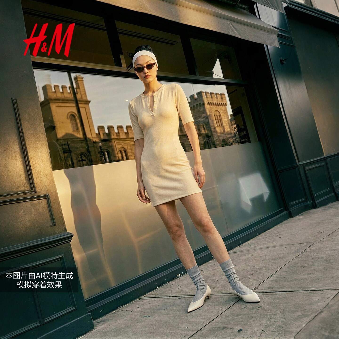 HM女装连衣裙26年春夏新品短袖亨利领休闲通勤短款连衣裙1000088